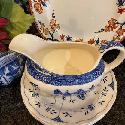 Older large Vintage blue willow blue & white porcelain gravy boat