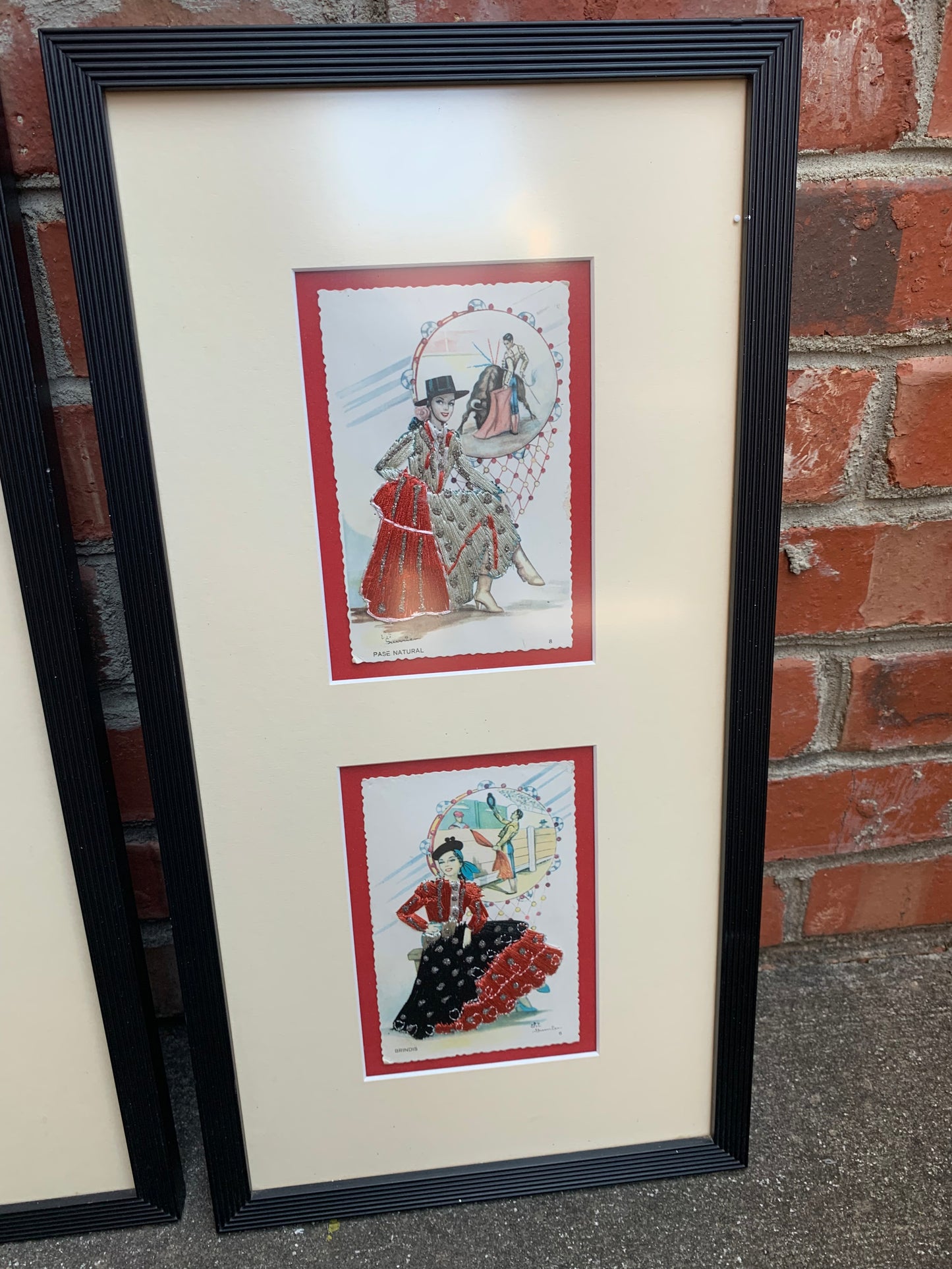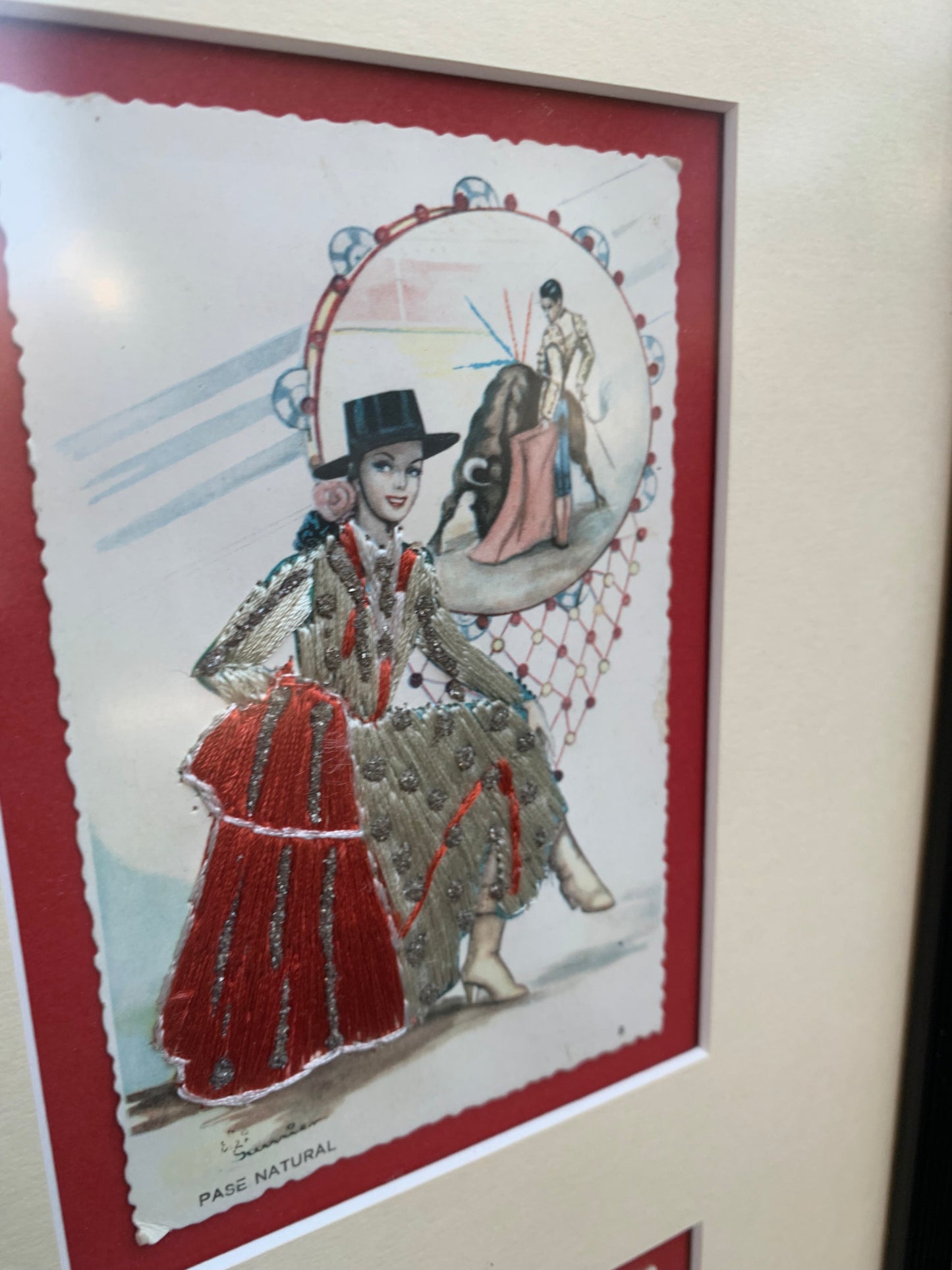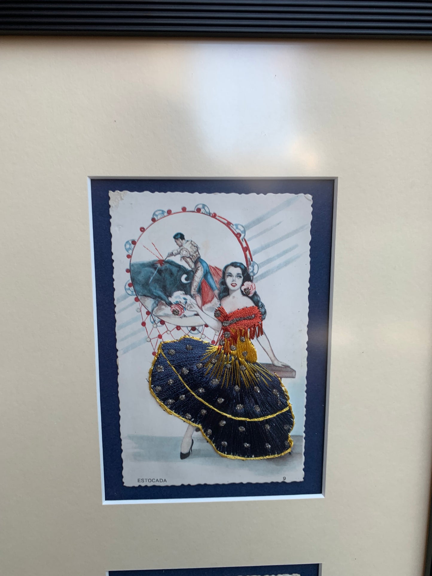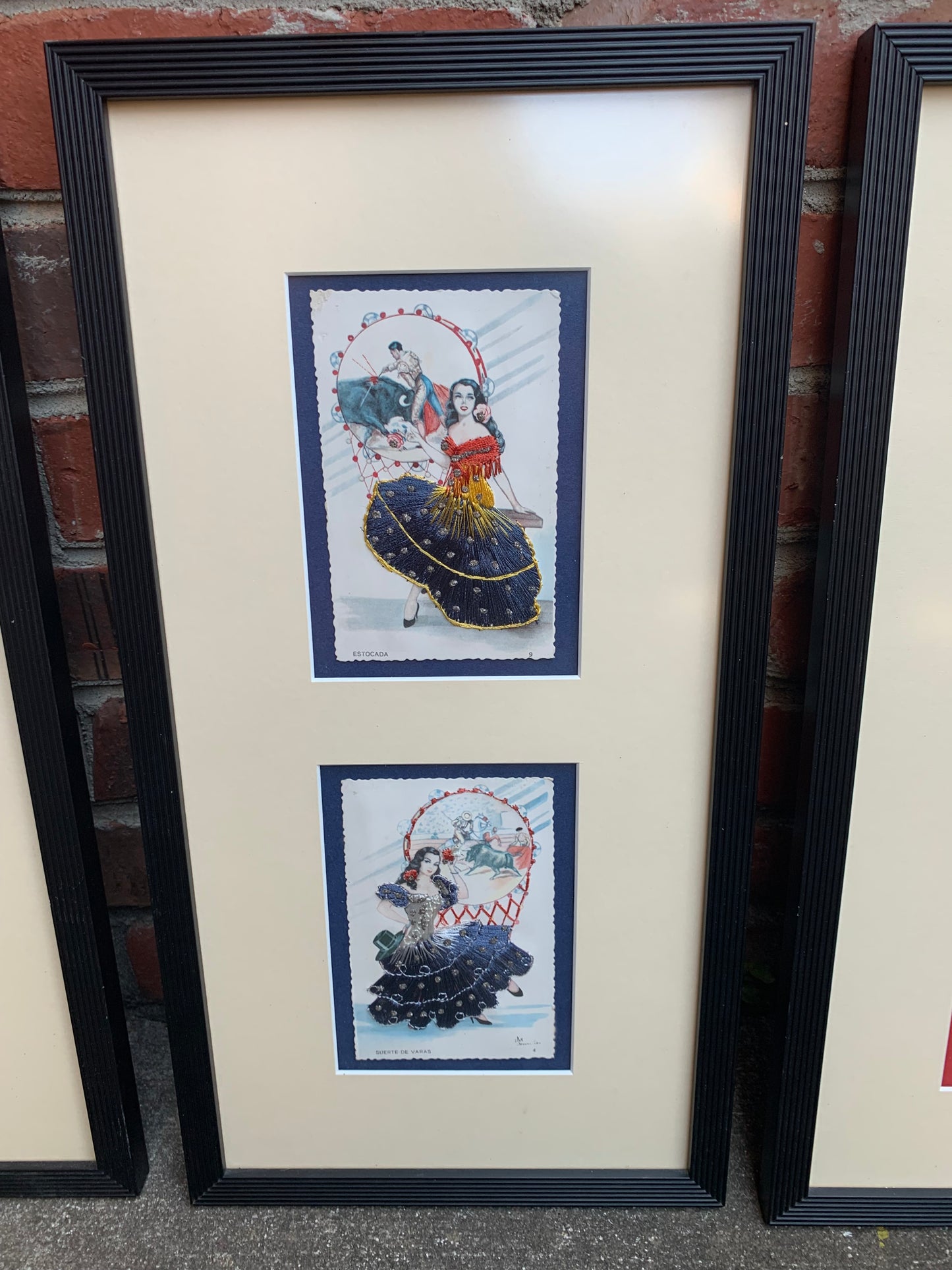 This is one of my favorite finds to date! These are vintage embroidered thread postcards from Spain! The detail that went into these is incredible! With a true love for snail mail and original art these are a rare trio to find! Professionally framed and ready to be hung! Each measures 18 1/2” x 9 1/2”.
