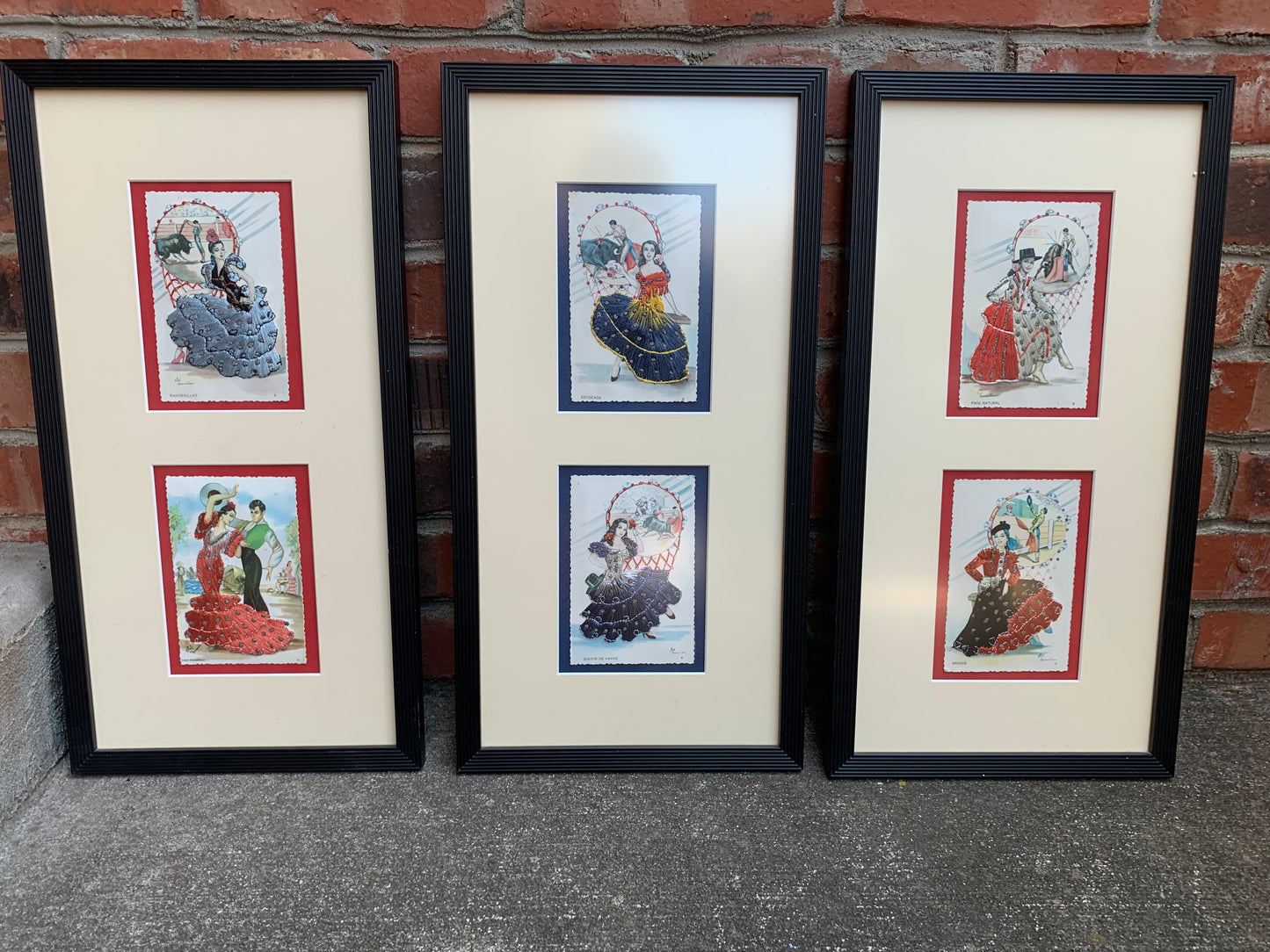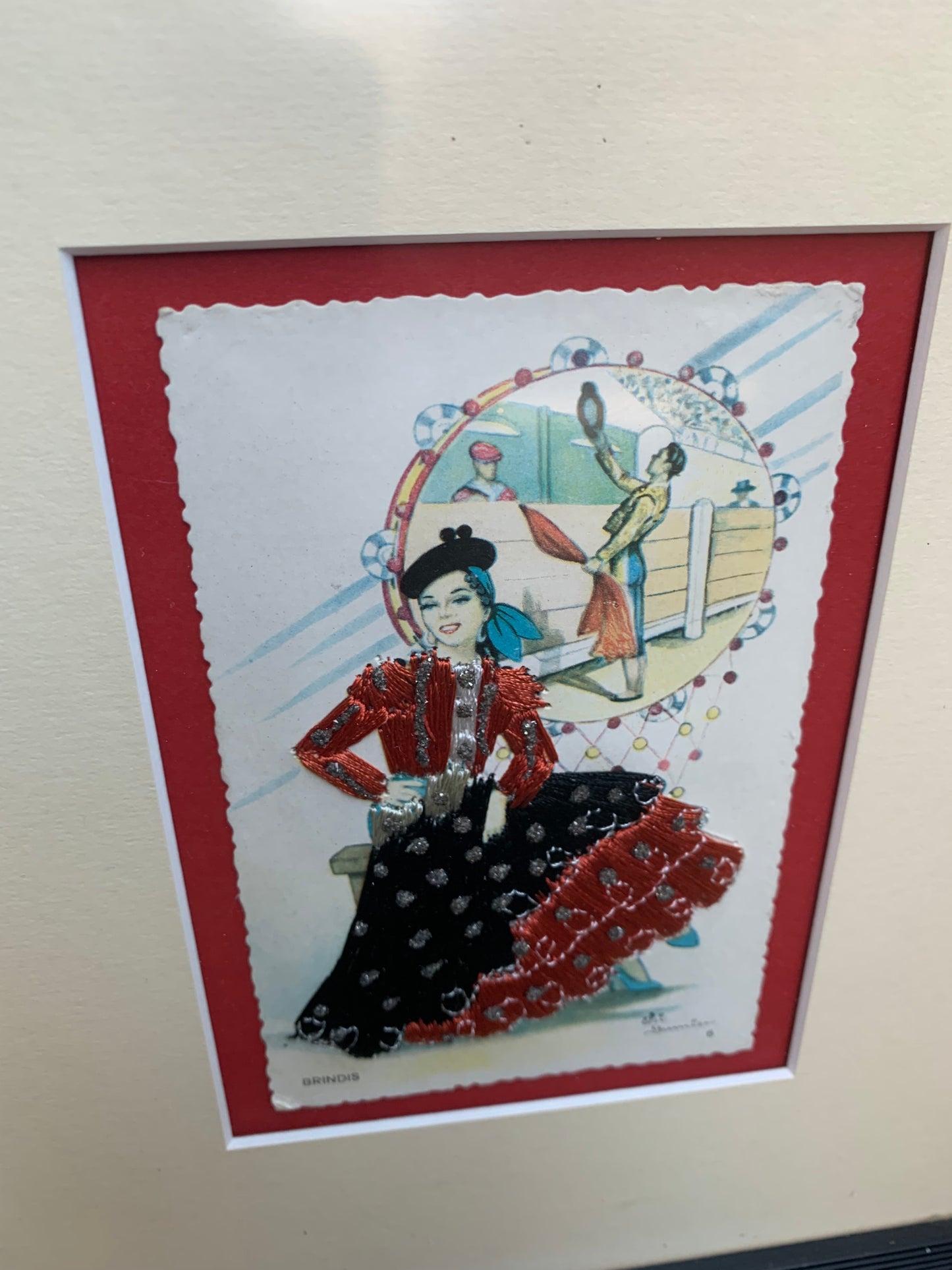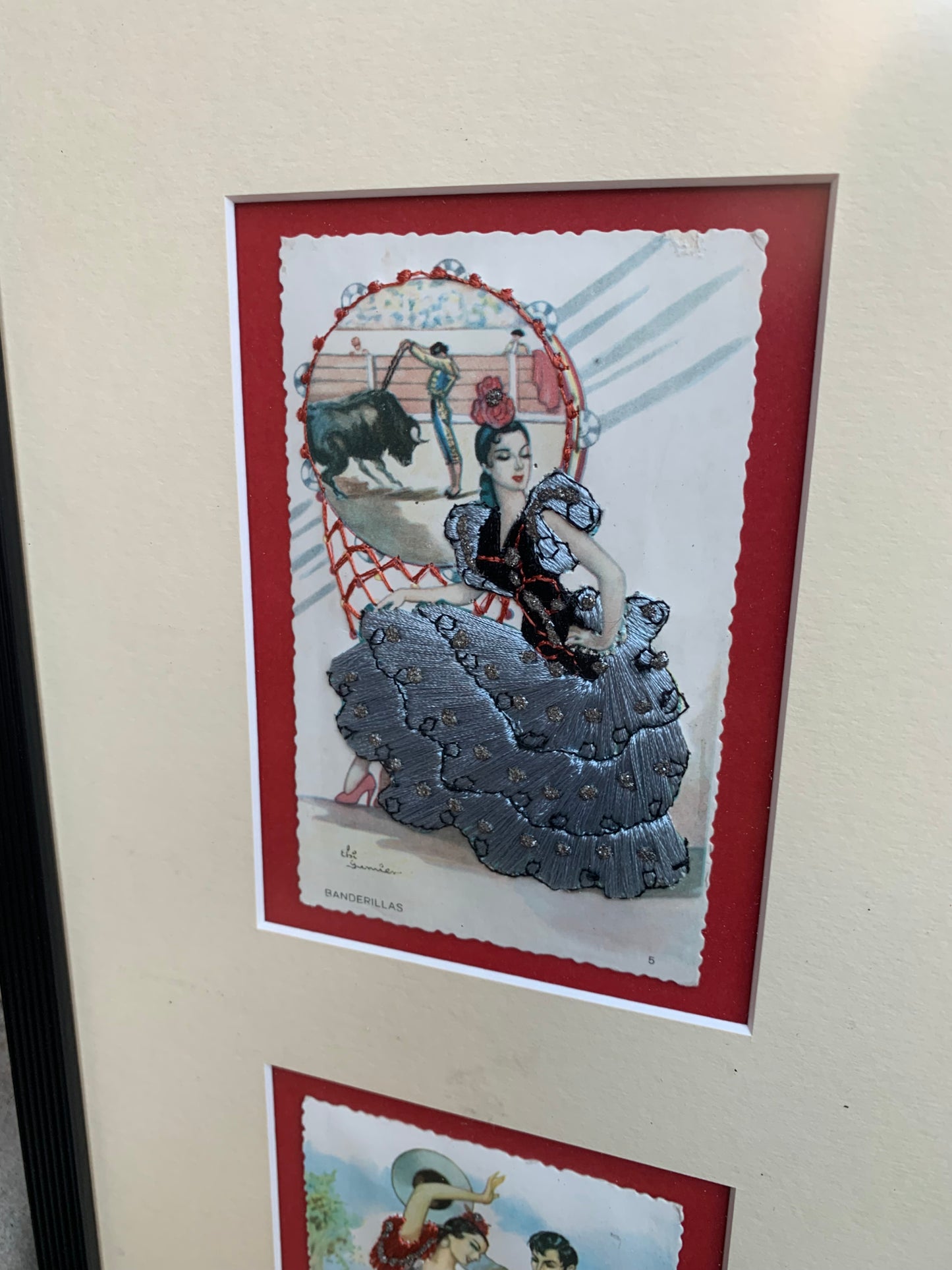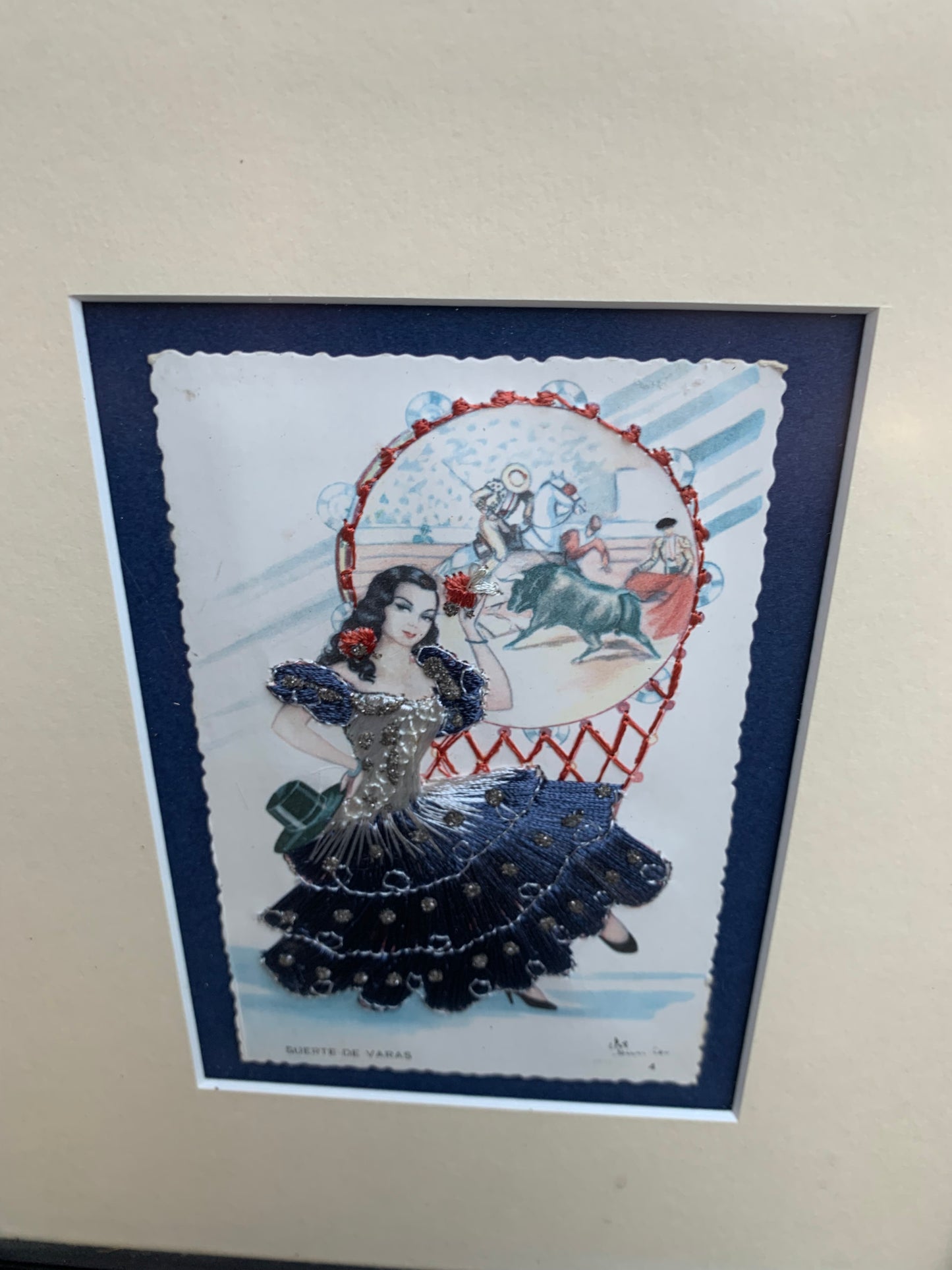 This is one of my favorite finds to date! These are vintage embroidered thread postcards from Spain! The detail that went into these is incredible! With a true love for snail mail and original art these are a rare trio to find! Professionally framed and ready to be hung! Each measures 18 1/2” x 9 1/2”.