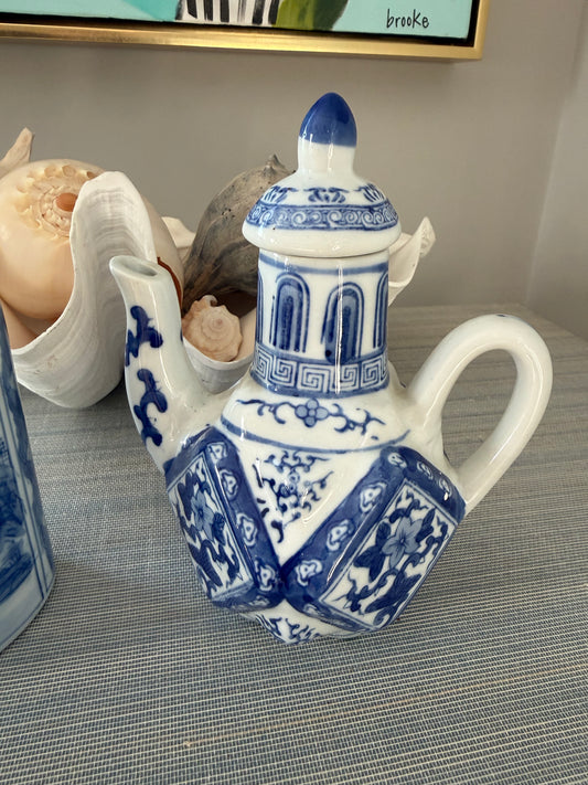 Danny’s Fine Porcelain: Blue & White Porcelain Foo Dog Lidded Box with Floral Motif