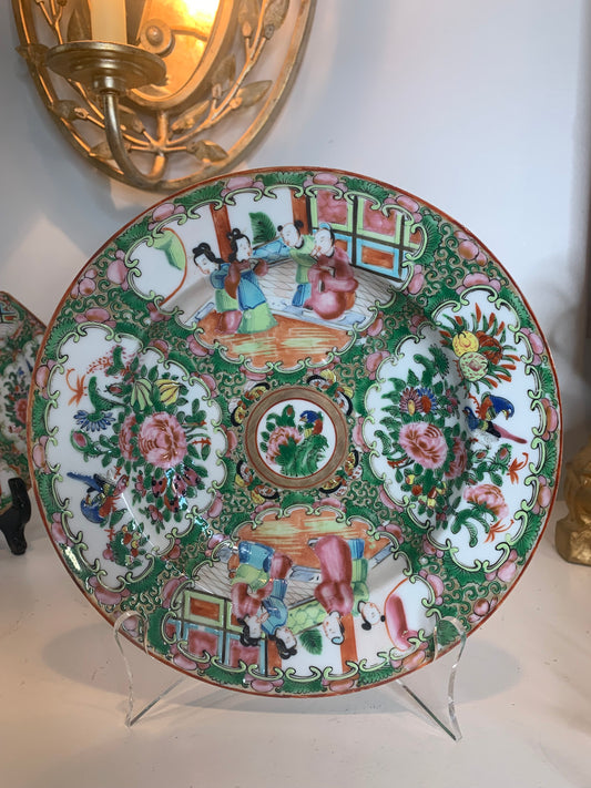 Set of two vintage blue & white ginger jar chinoiserie chic designer plates.