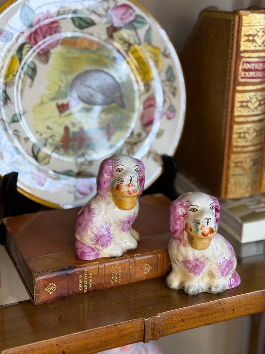 Danny’s Fine Porcelain: Mini Pink Spaniel Basket Dog Pair | 5.5Lx2Wx4H