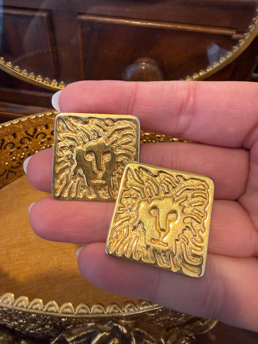 Vintage 1980’s Anne Klein Square Lion Pierced Earrings