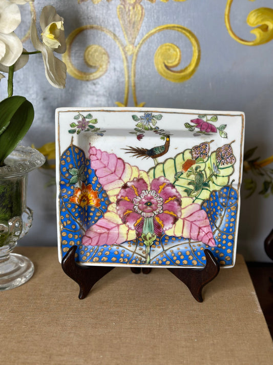 Minnie, Reserved live sale 12/16 Rose Famille Antique W/ Stand