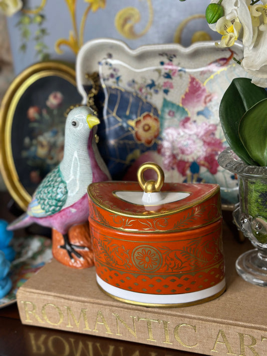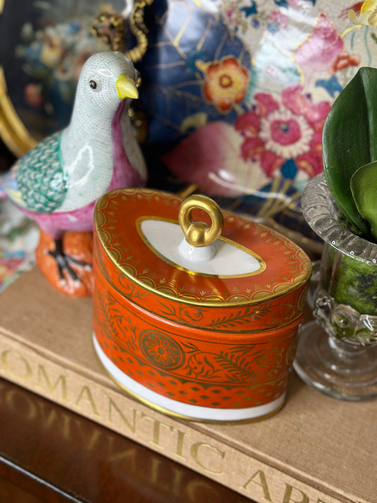 Herend Fishnet hand-painted porcelain with 24K gold: Box with Bow - 2” L × 1.75” H,