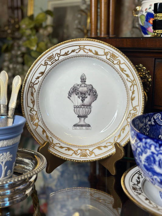 Pair (2) Porcelain Black/White & Gold Decorative Porcelain Plate - Pristine