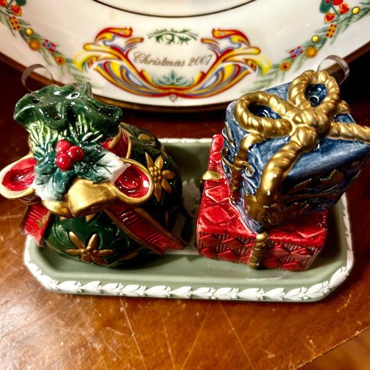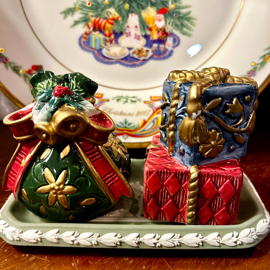 Set of 3 vintage porcelain pieces vases and footed dish by designer Lenox in Serenade