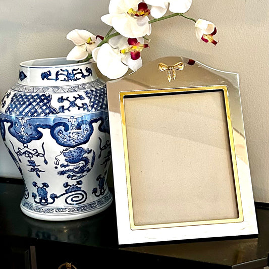 Danny's Fine Porcelain - Blue & White Pagoda Willow, Bronze Footed Trinket/Soap Dish, 8x4.5"