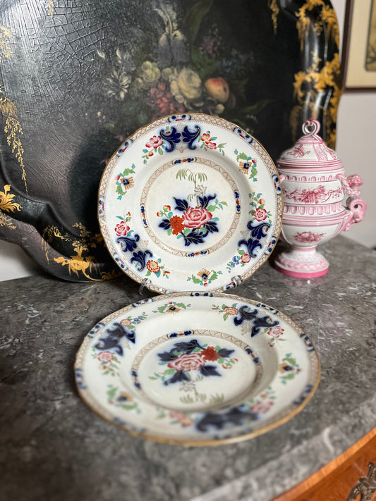 Absolutely Gorgeous Antique English Floral Cobalt Hand Painted Plate