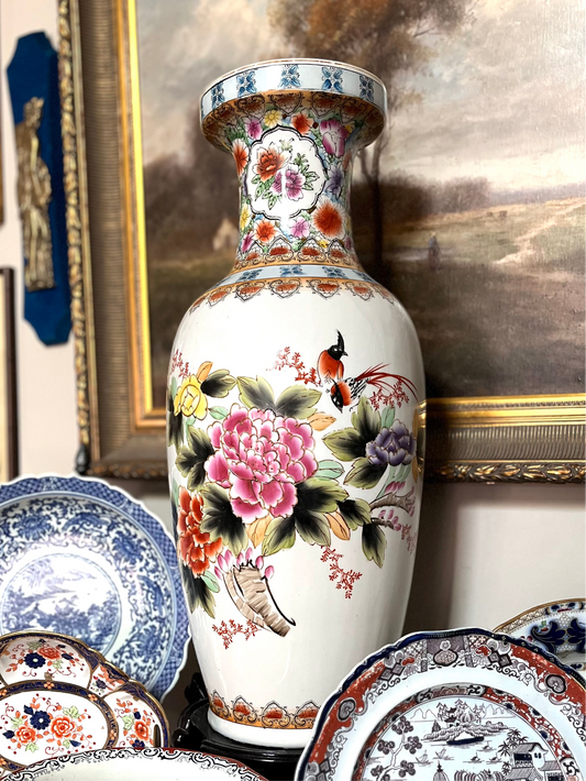 Beautiful Tall Chinoiserie Cylindrical Peach Vase With Lucky Bats (made exclusively for Garfinkel’s)