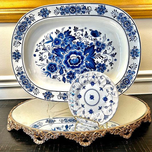 Gorgeous Lenox Smithsonian platter with florals, bow, and gold rim!
