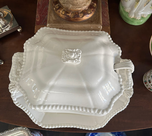 Rare Antique Copeland Spode Of England cobalt blue & white Scalloped Edge round serving bowl