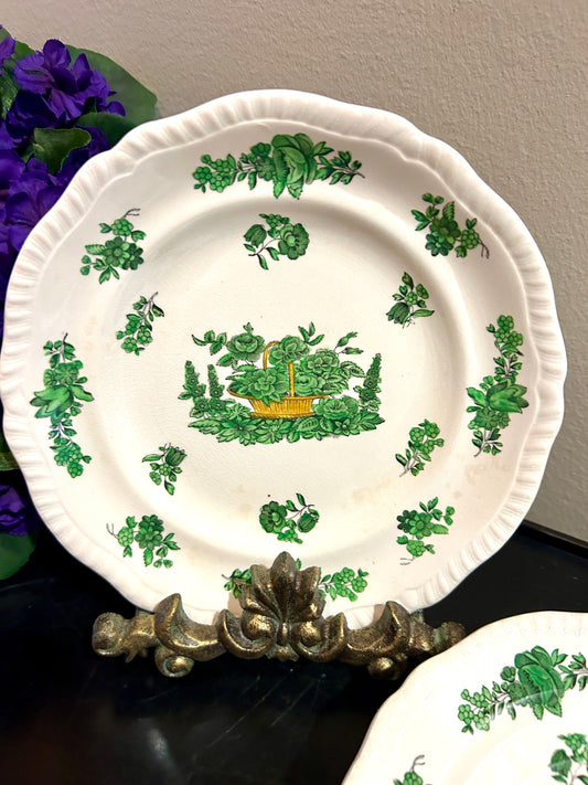Set of 4 Rare Antique Copeland Spode Of England Green Bouquet salad plates