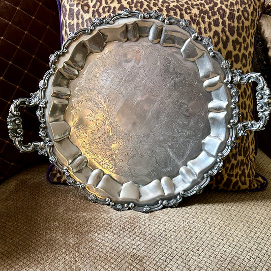 Chic and shiny vintage silver plate reticulated galler tray platter