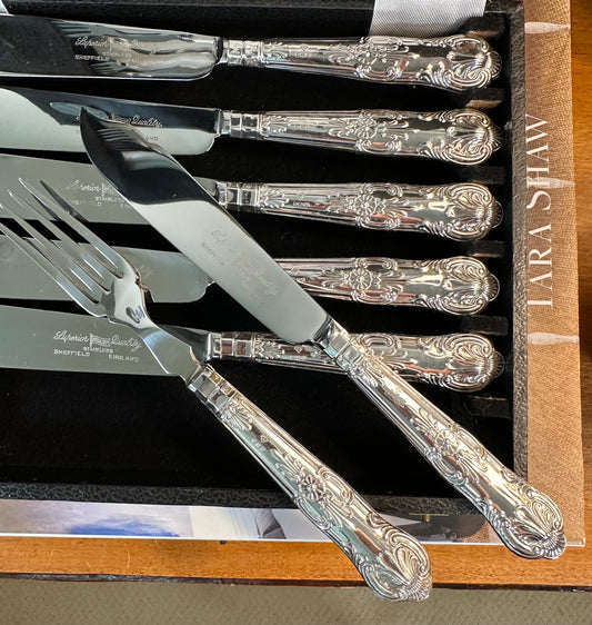 Yeoman Silver Plate EPNS Grapefruit Spoons & Knife Set | Sheffield, England | c. 1950s