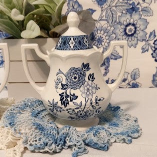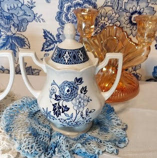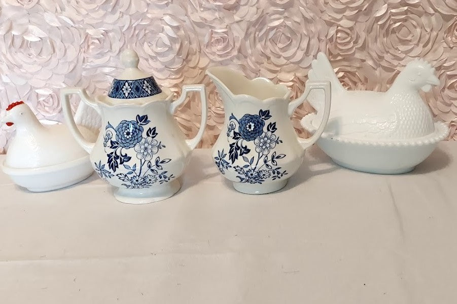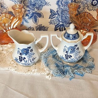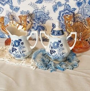 Blue and White Royal Staffordshire Floral Cream and Sugar Set