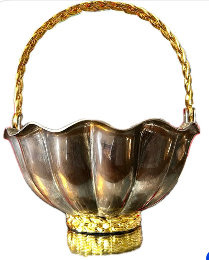 Vintage silver plated & brass basket planter by designer International Silver Co
