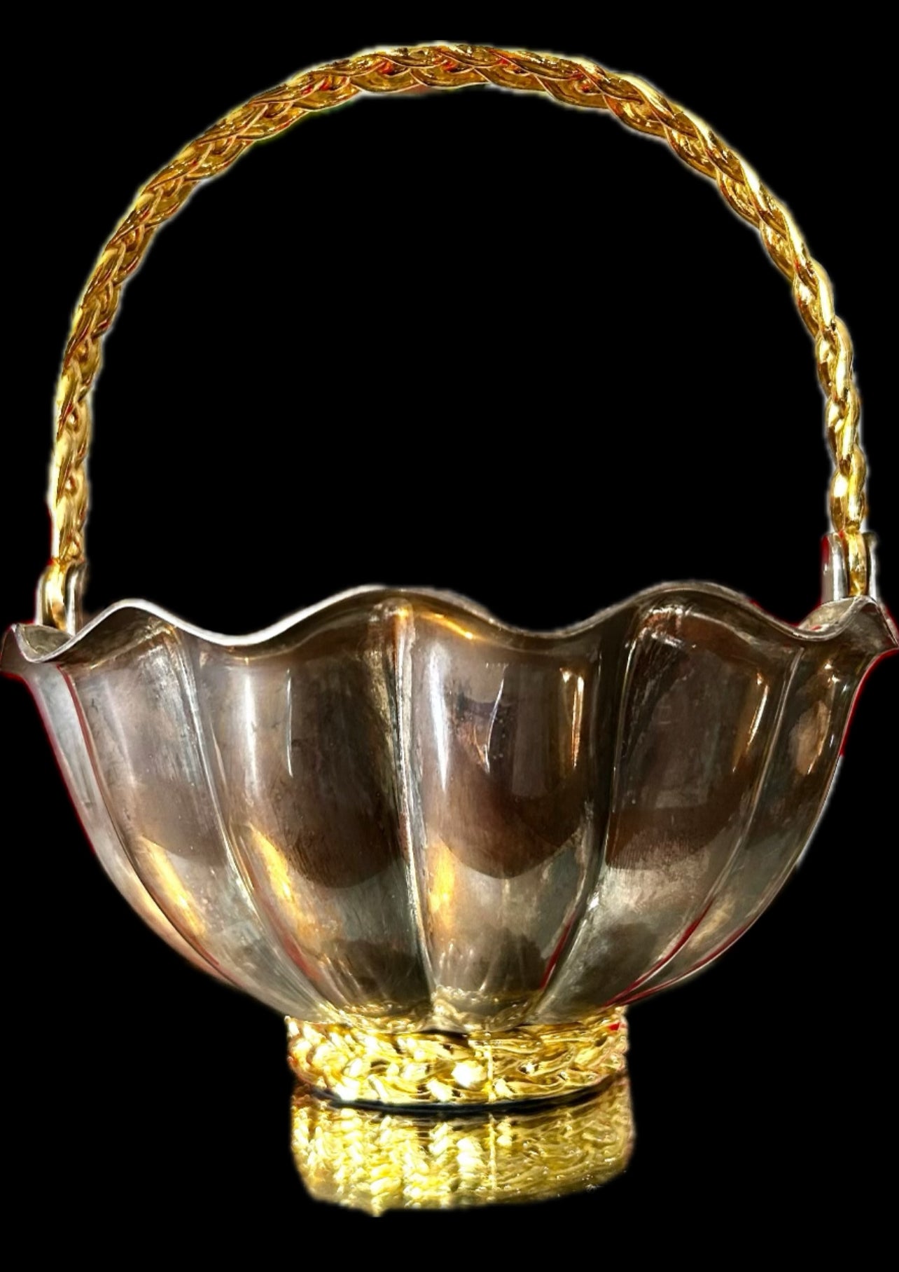 Vintage silver plated & brass braided large basket planter by designer International Silver Co