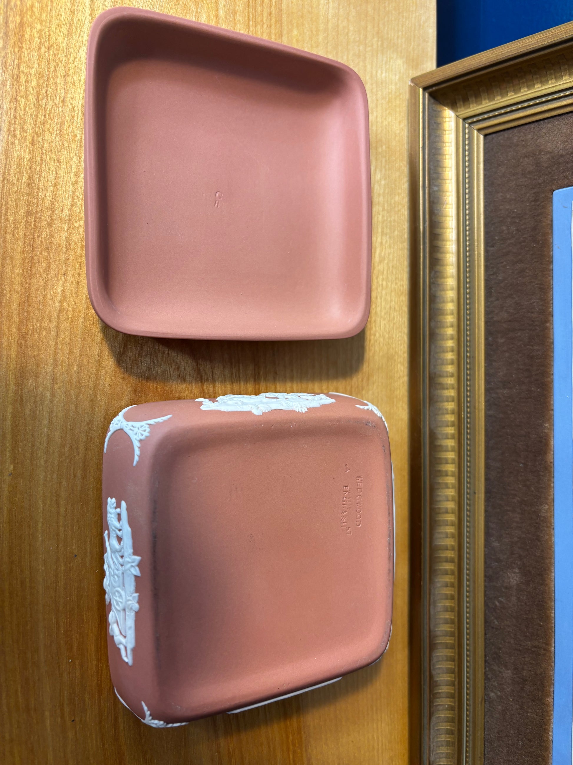 Wedgwood Jasperware terracotta lidded box! Features a warm terracotta finish with cream-colored relief decorations inspired by classical Greek and Roman art motifs. In excellent condition!