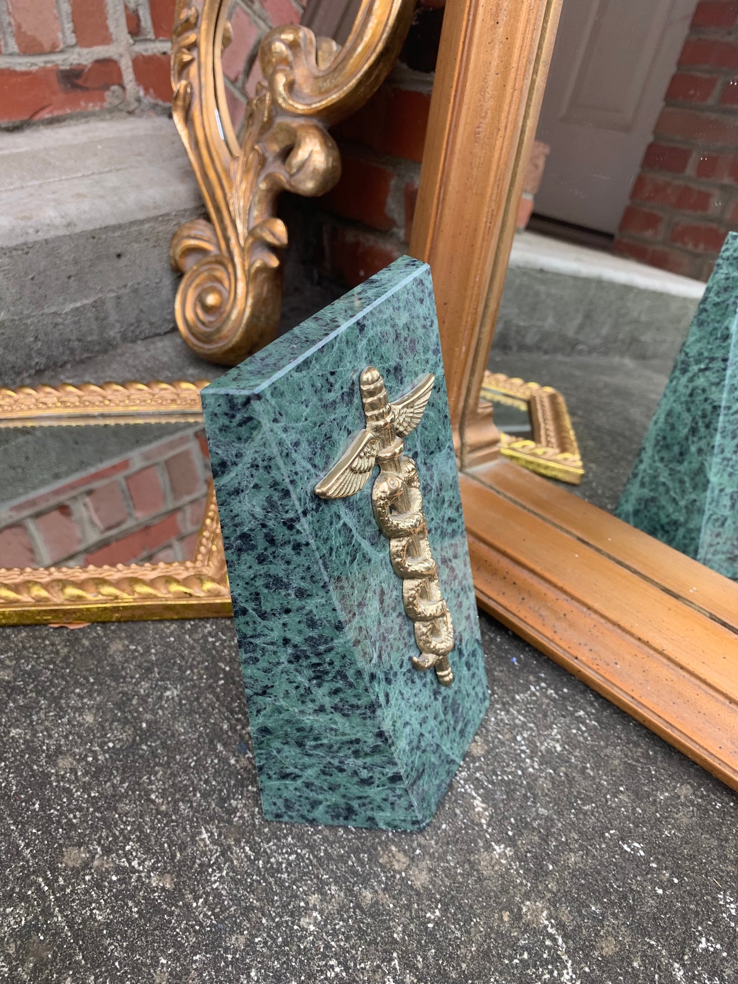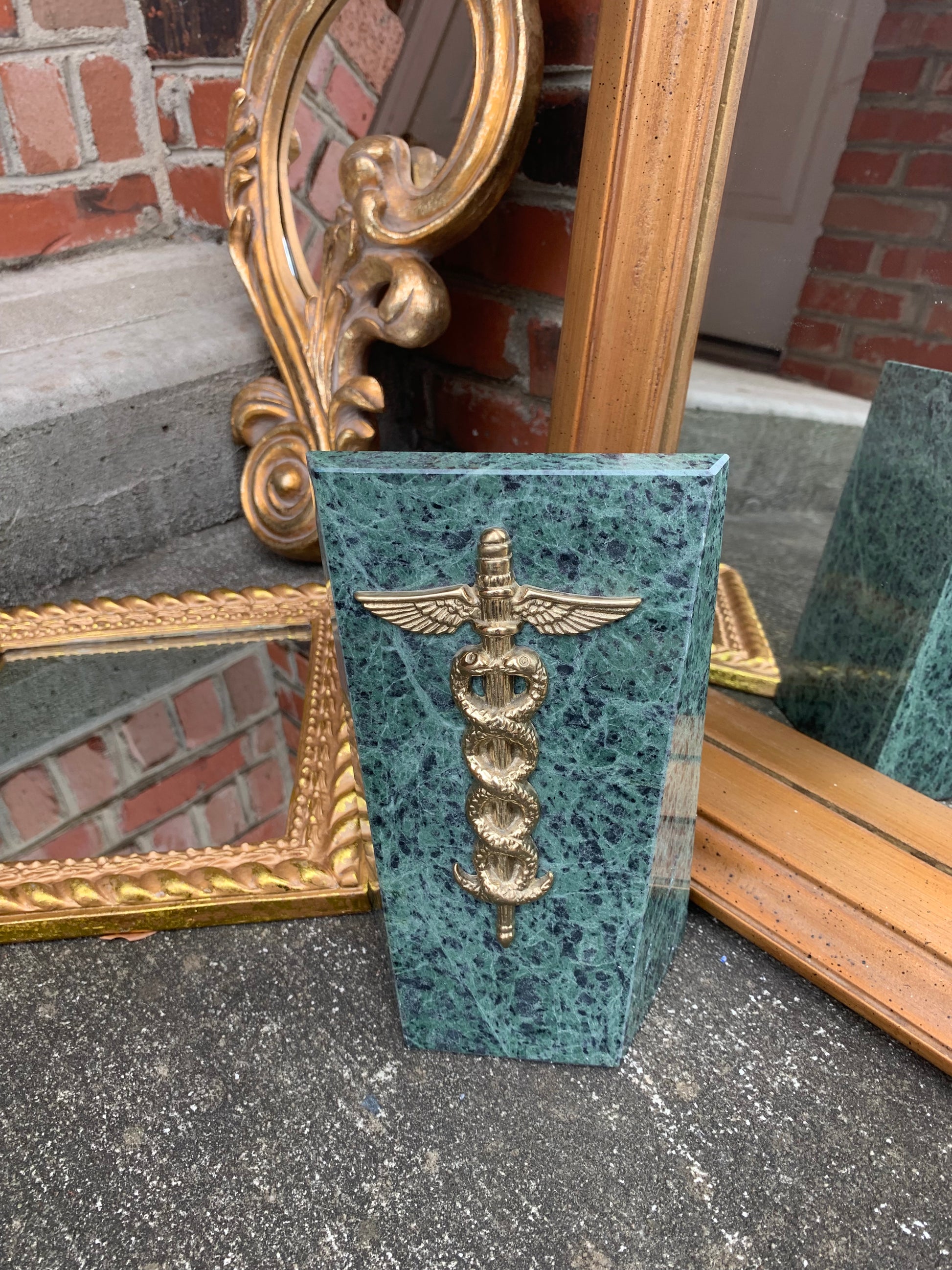 Stunning green marble doctor caduceus medical bookend! - Excellent condition!