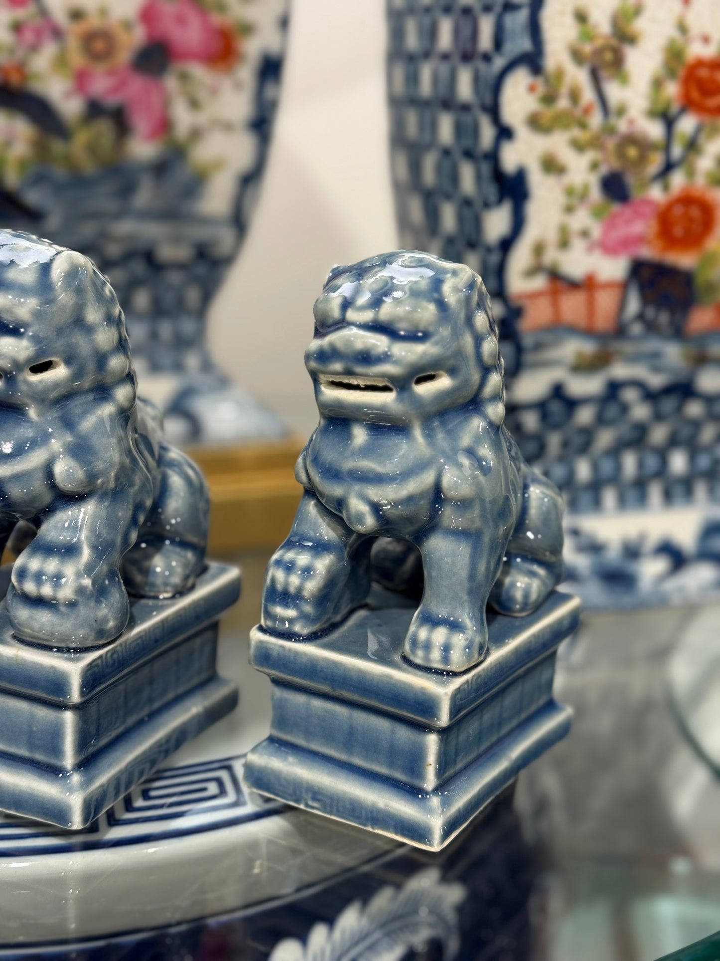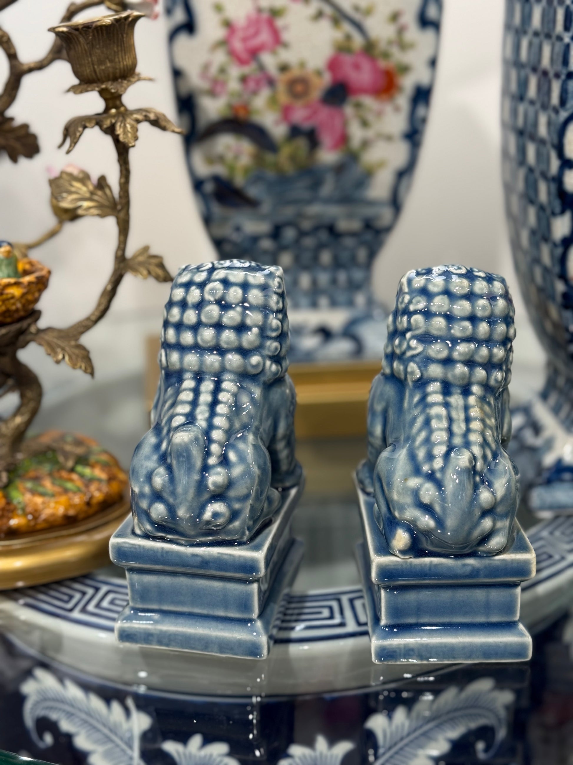Danny's Fine Porcelain: Dusty Blue Foo Dog Pair: 6" tall, 3.5x2.5"
