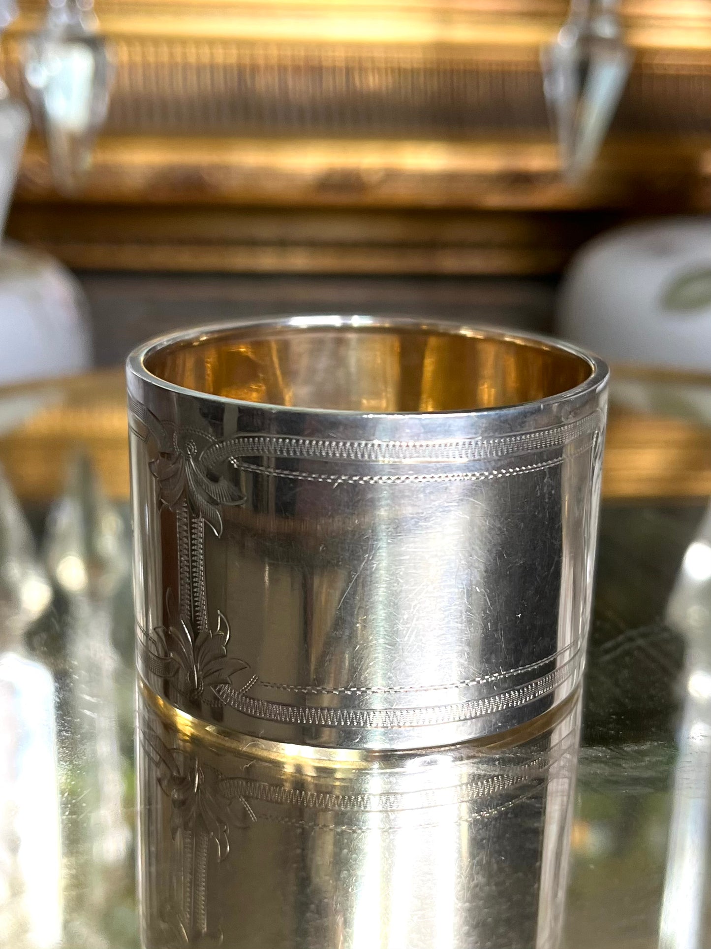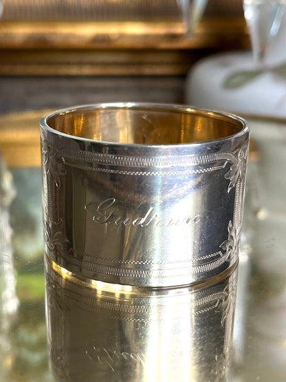 Beautiful European Antique 19th Century Engraved Sterling Silver .830 Napkin Ring