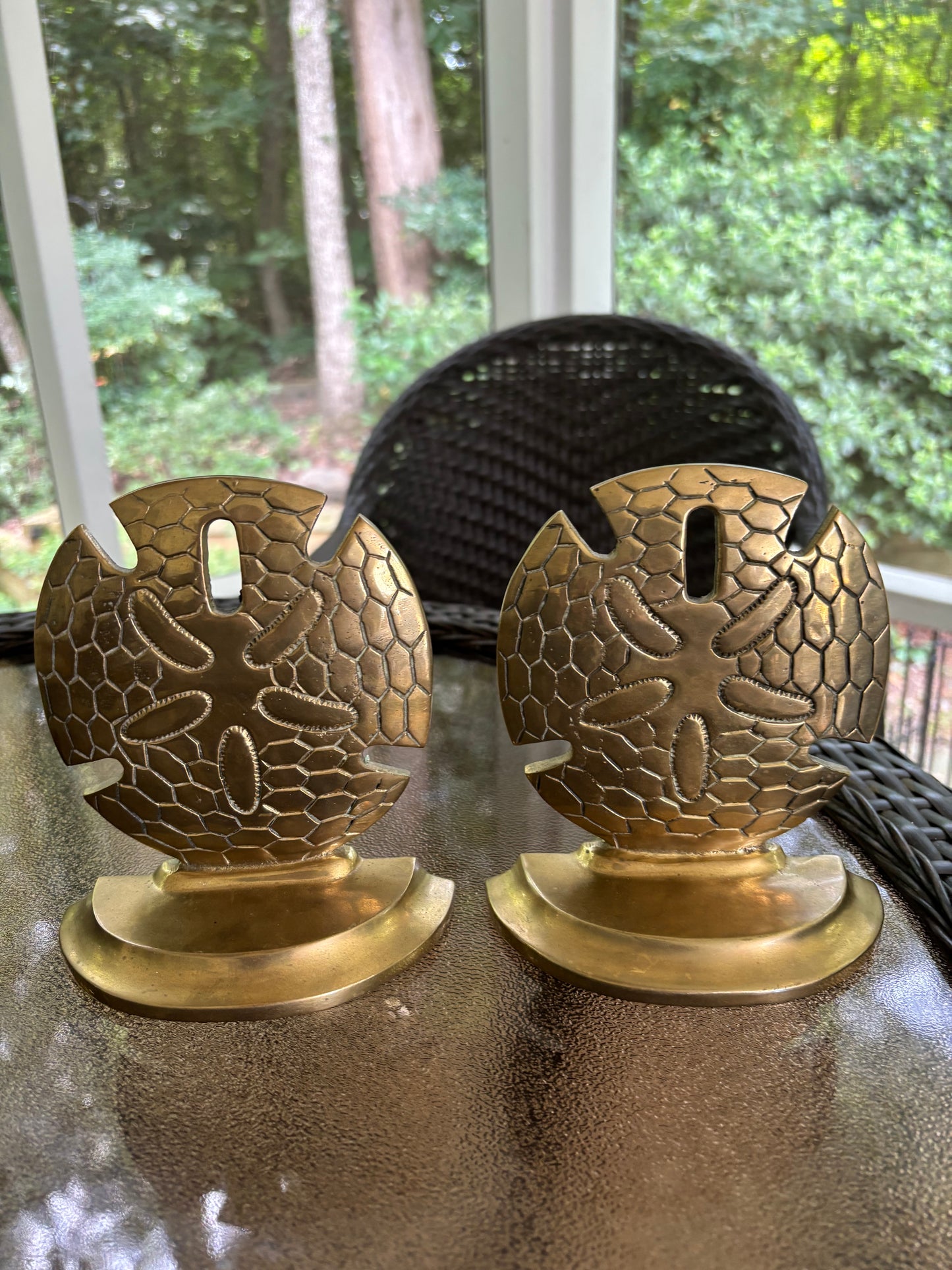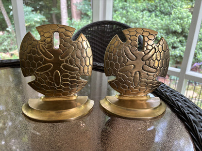 Beautiful large brass sand dollar bookends pair! Heavy and measure 6” tall.