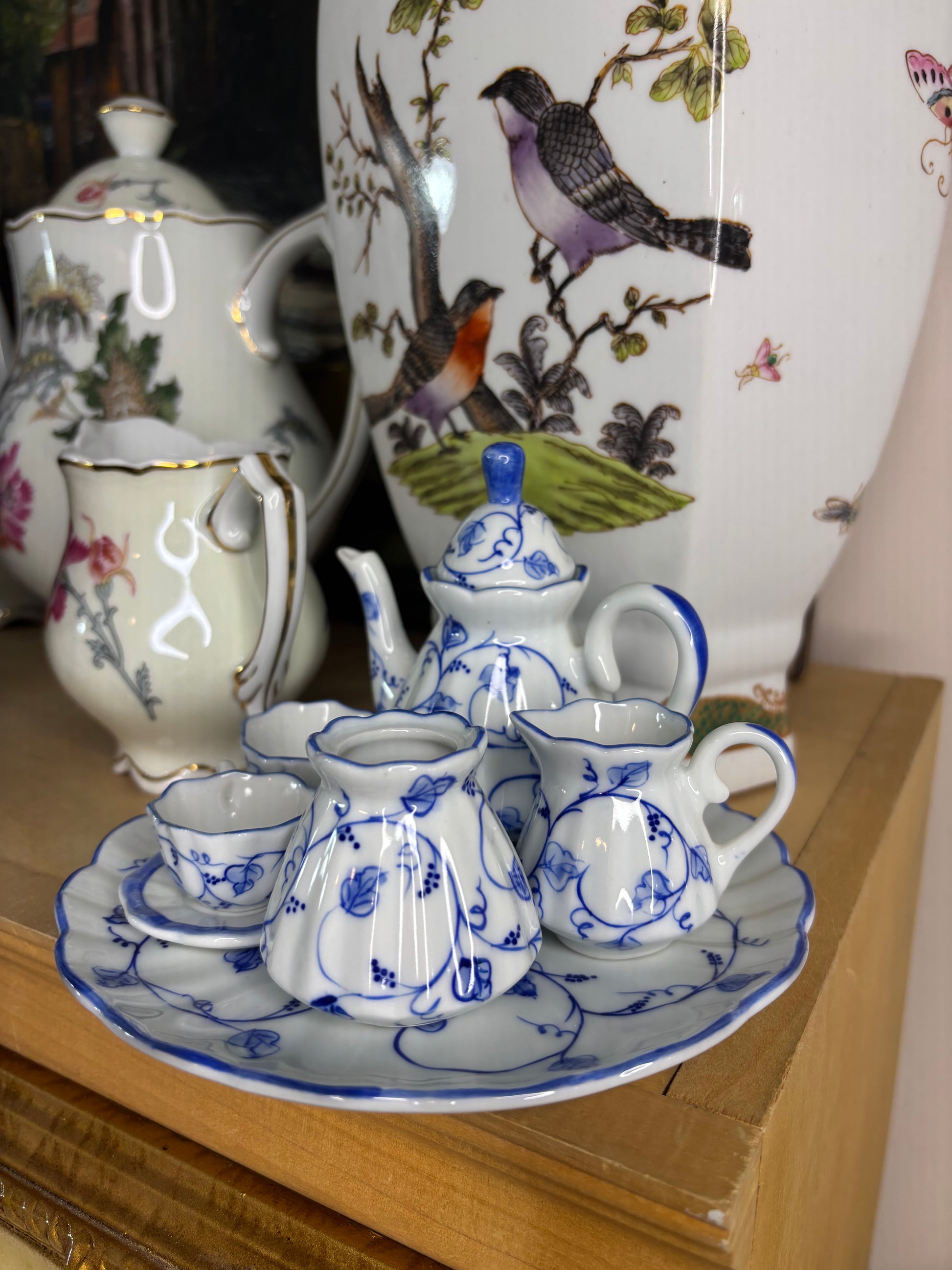 Beautiful miniature blue and white tea set!