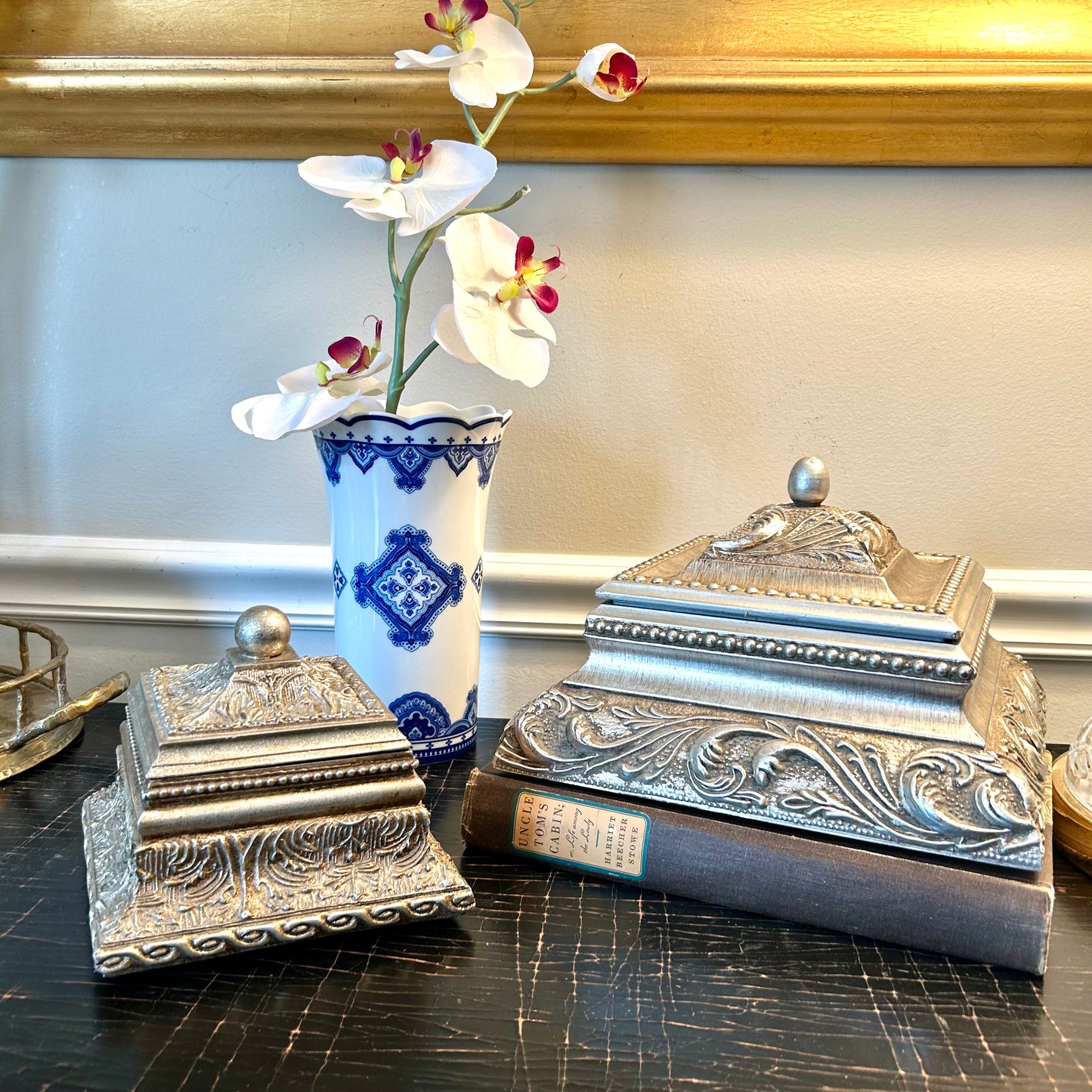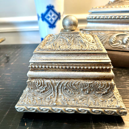stunning silver shade baroque wooded frame box.