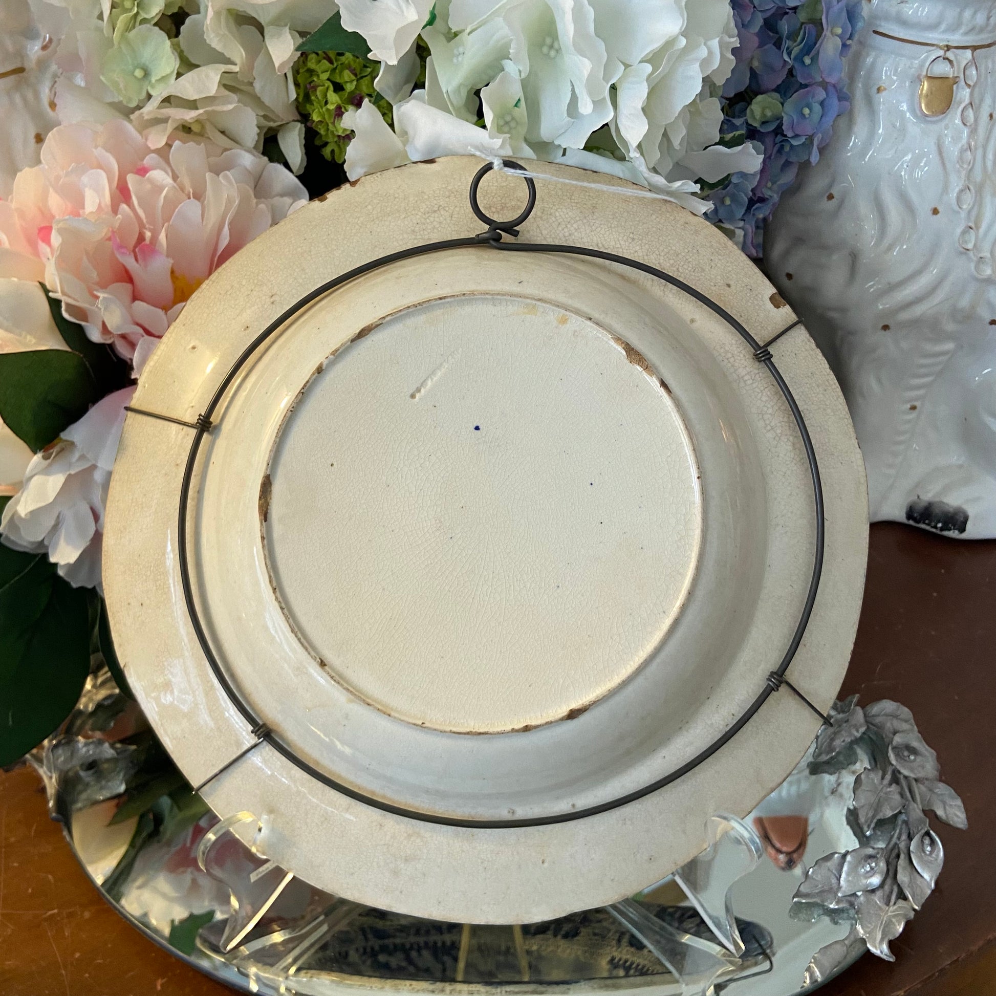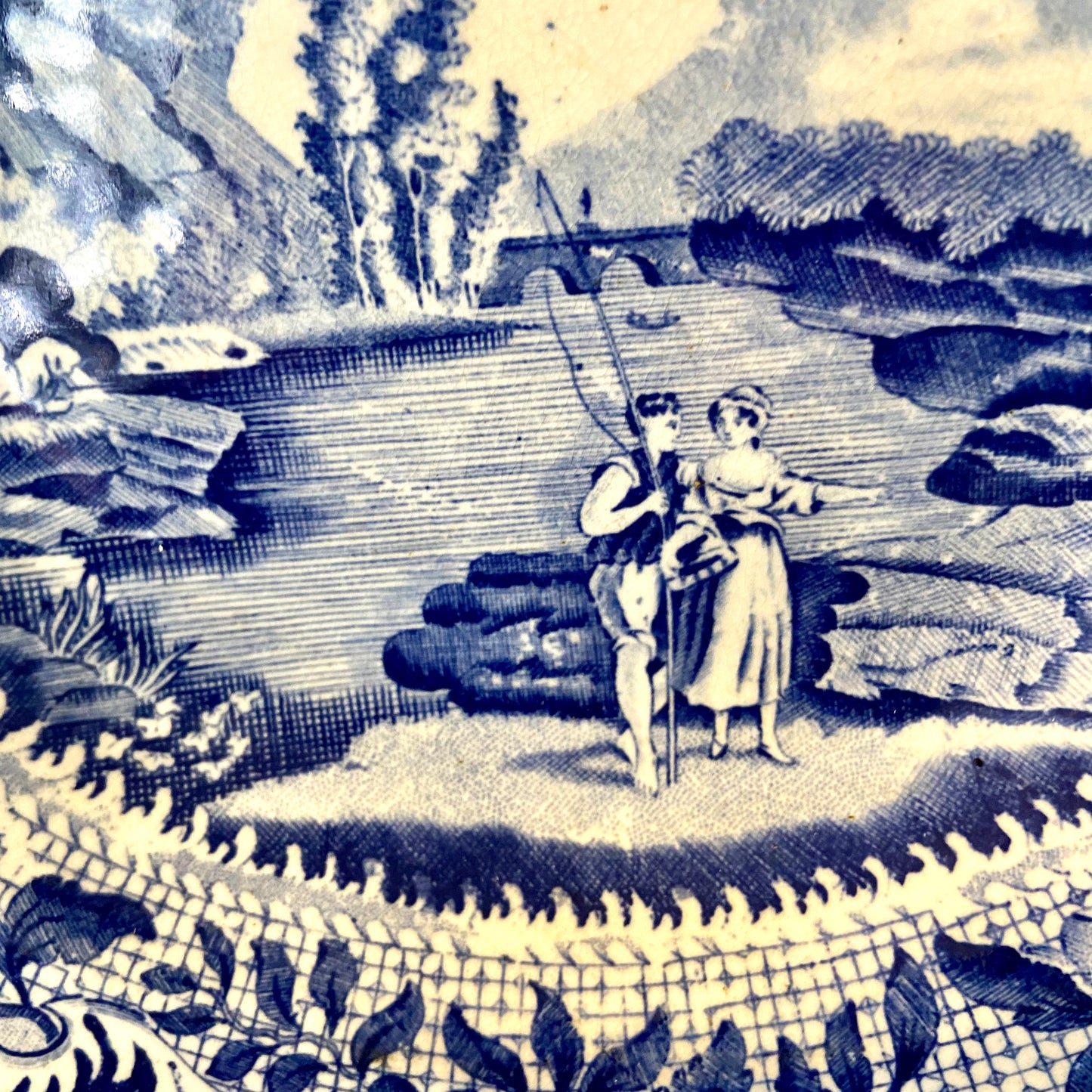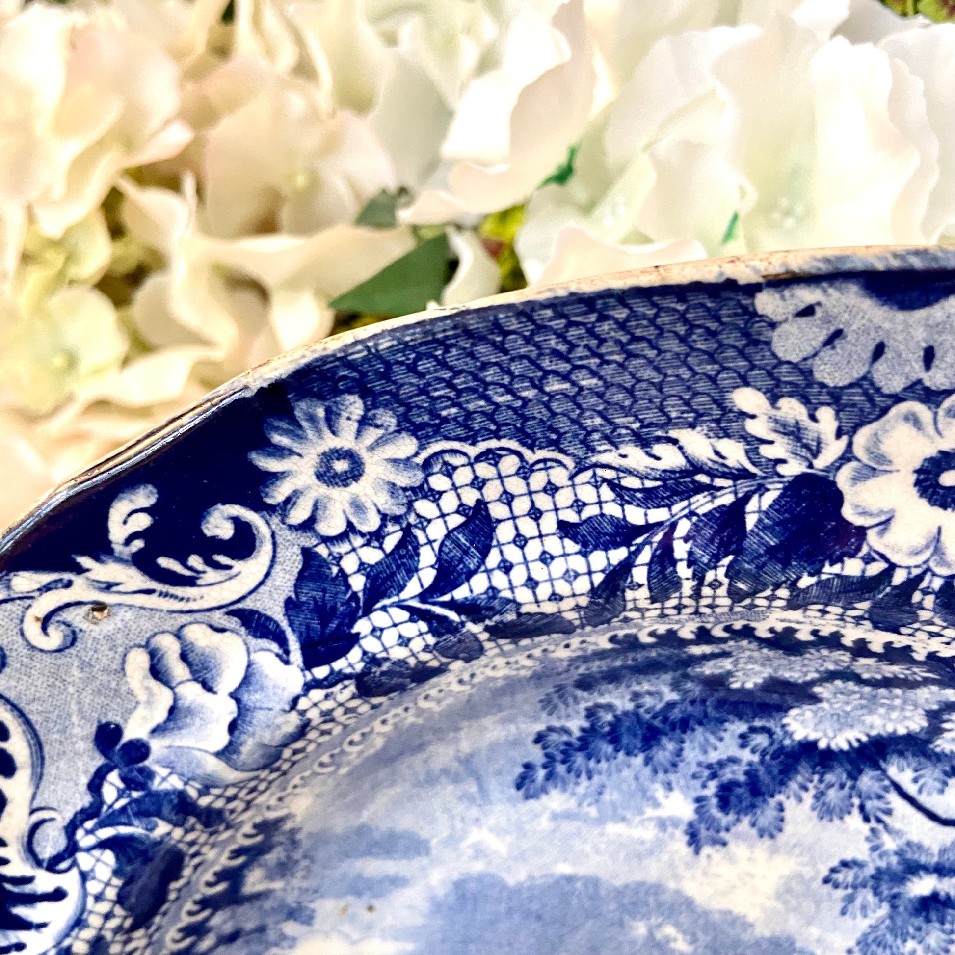 Antique British English Rockingham Brameld Castle of Rochefort pattern navy blue & white large bowl