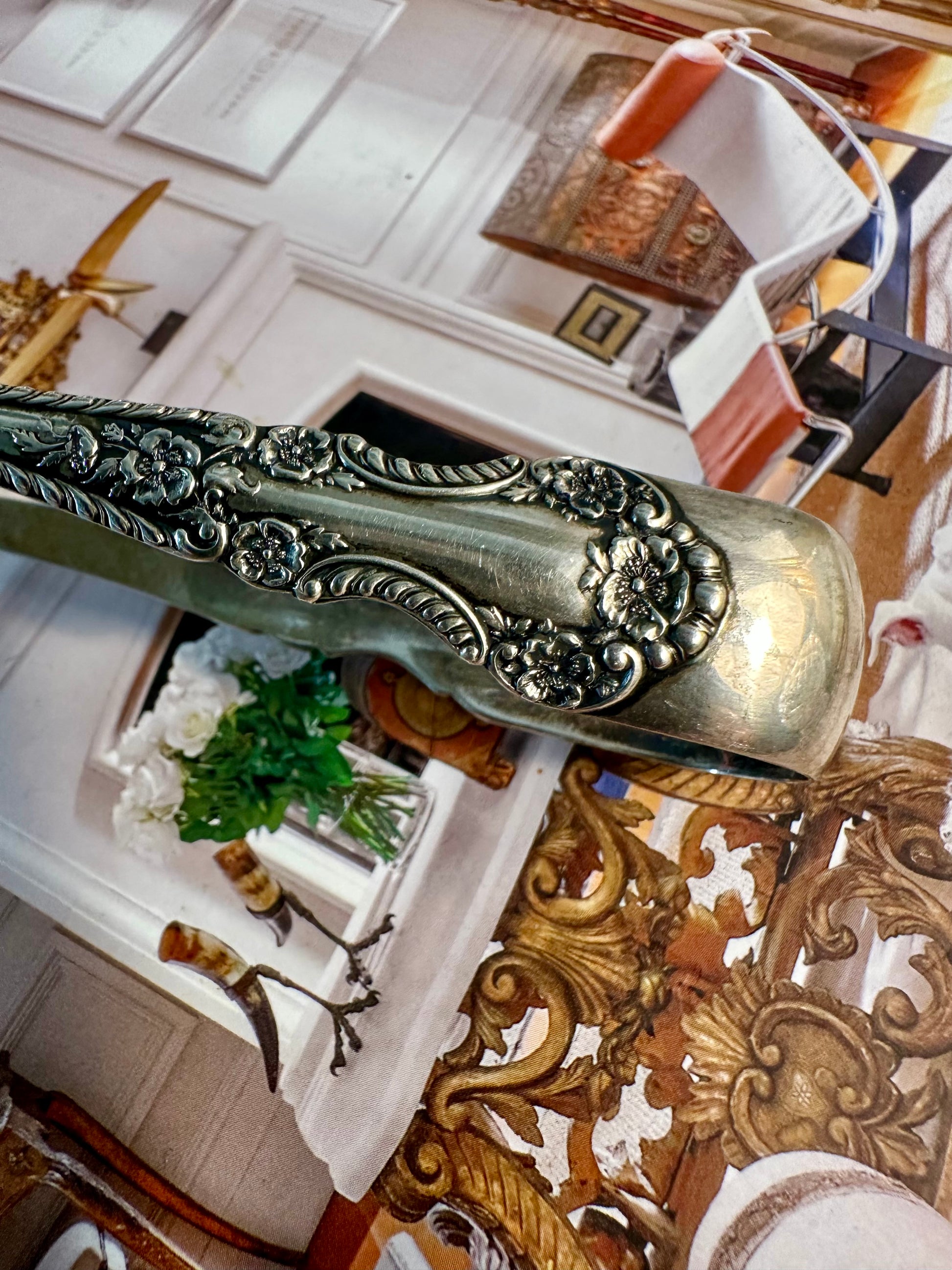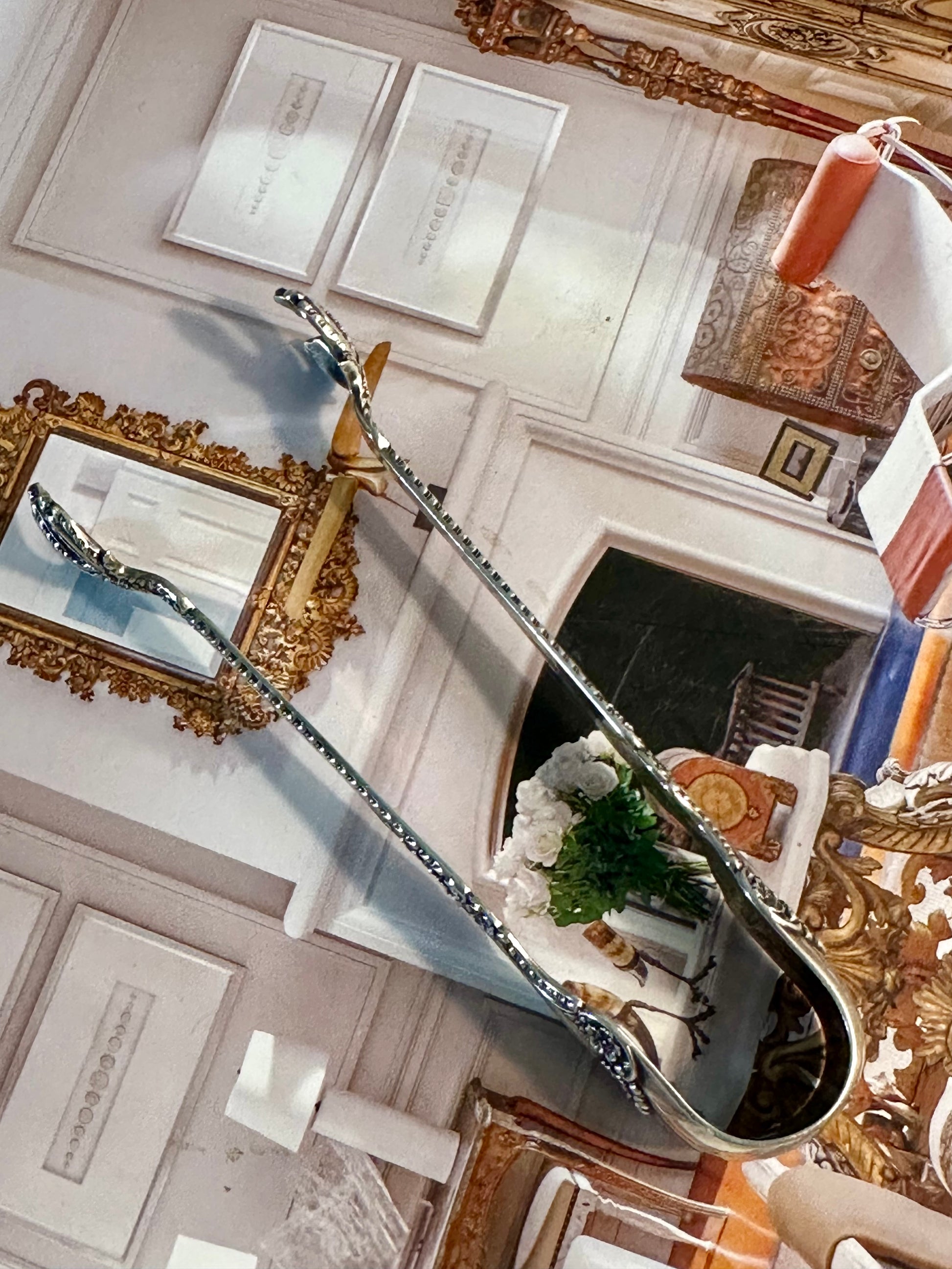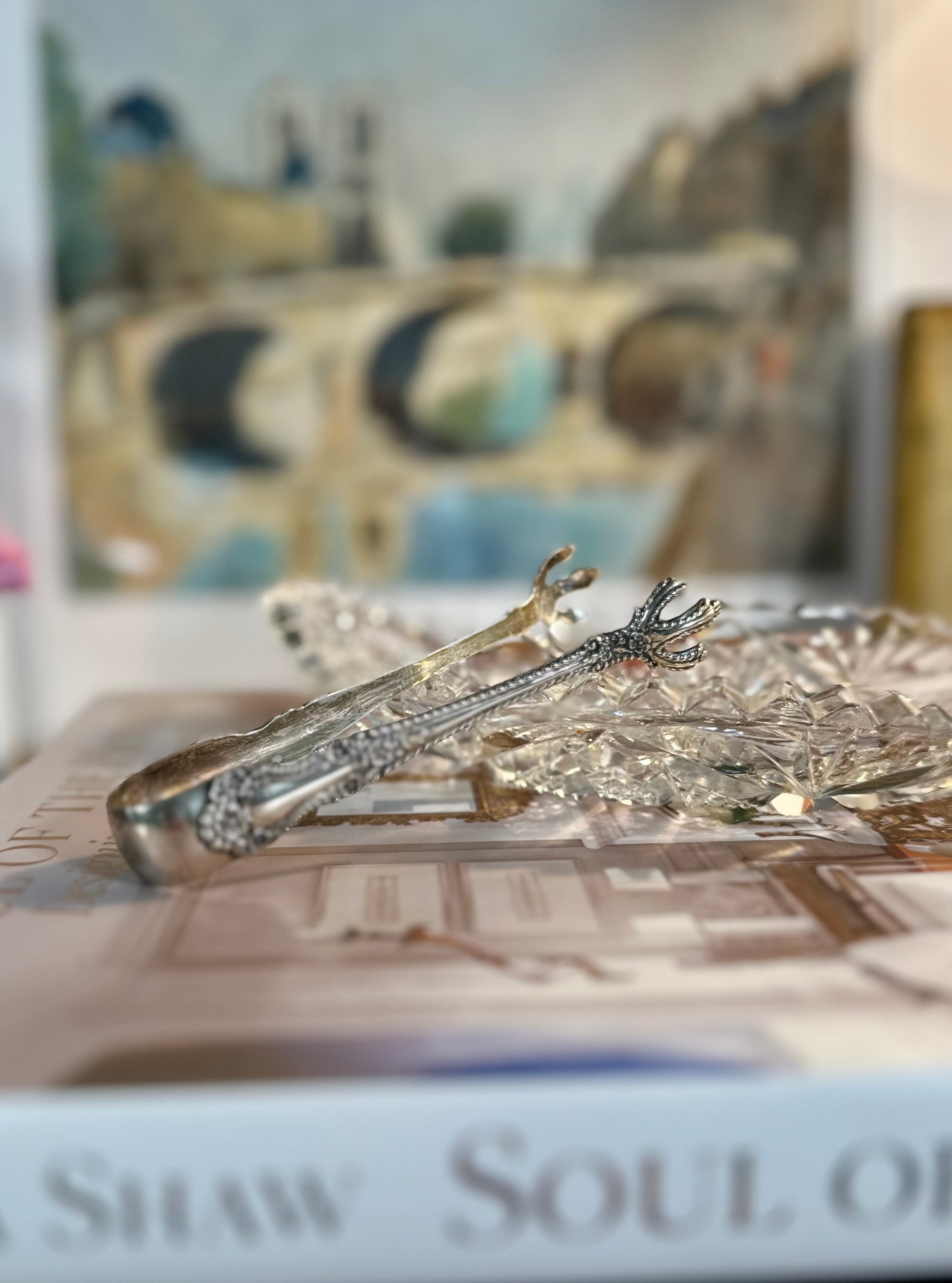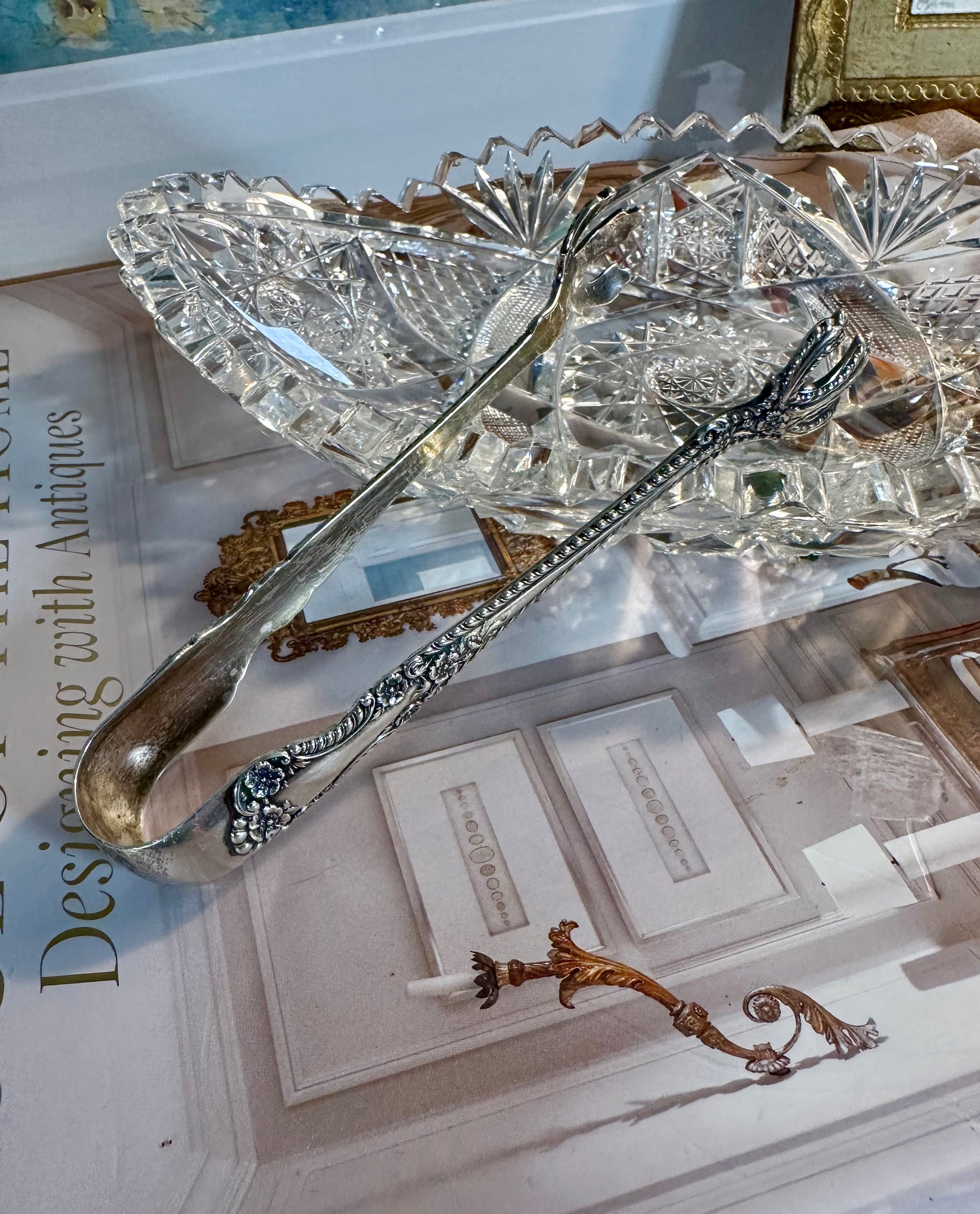 The classiest tongs in town. These elegant sterling silver sugar tongs showcase the exceptional design and craftsmanship for which antique Gorham Silver is renowned. Crafted in the Cambridge pattern—introduced in 1899—they feature a beautifully detailed floral and gadroon motif, along with those wonderfully expressive claw tips that collectors love. Traditionally used for sugar cubes, these petite tongs are just as charming when repurposed for serving olives, small confections, or adding a touch of antique silver to a curated charcuterie spread.