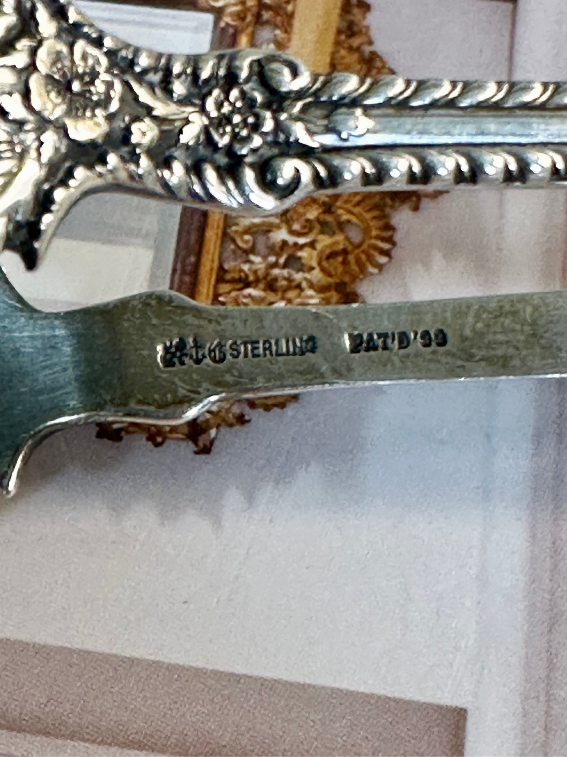 Marked with right-facing lion, anchor, “G” (Gorham mark used in the last quarter of the 19th century), Sterling, Pat'd 99 and they're in excellent antique condition. A delightful and versatile example of turn-of-the-century American silver—both practical and undeniably collectible.