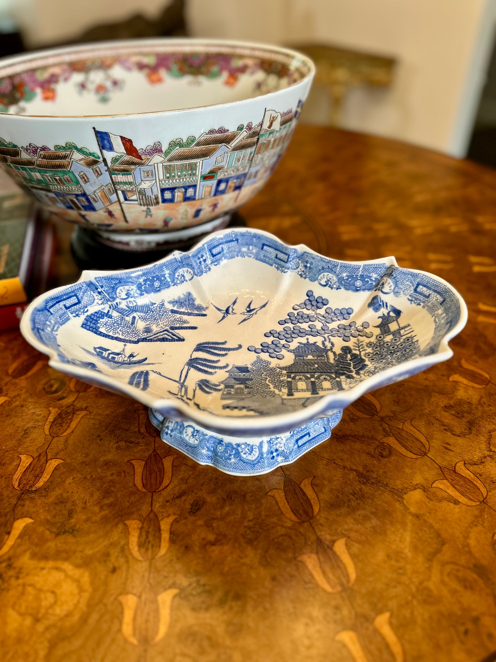 Early 19th Century Spode Pearlware Blue Willow Footed Comport/Bowl, 12”