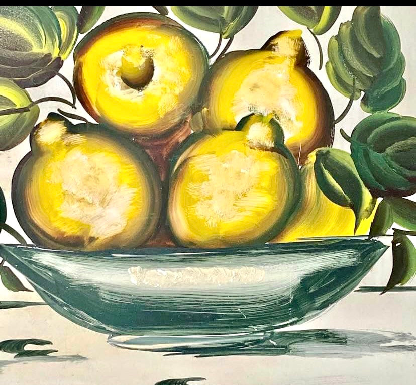 - Aged patina metal tole hand painted by Nash & Co NY
