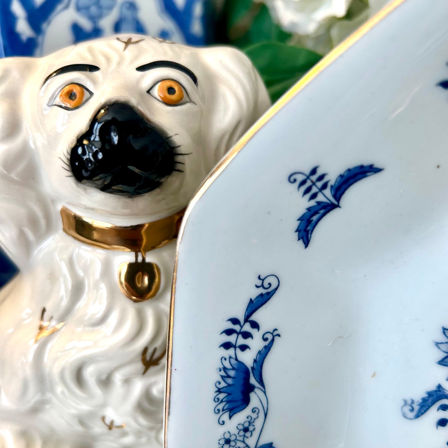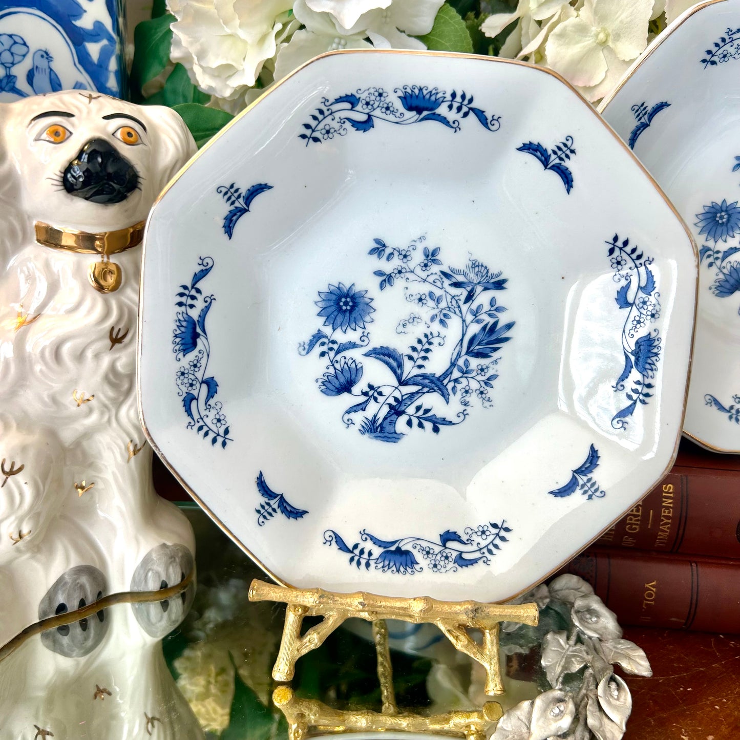 Set of 2 Blue & white blue onion crescent bone plates