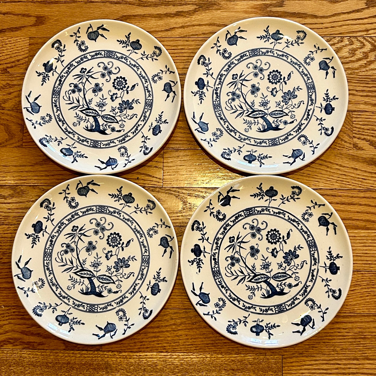 Set of 4 vintage chinoiserie blue & white 9d luncheon plates