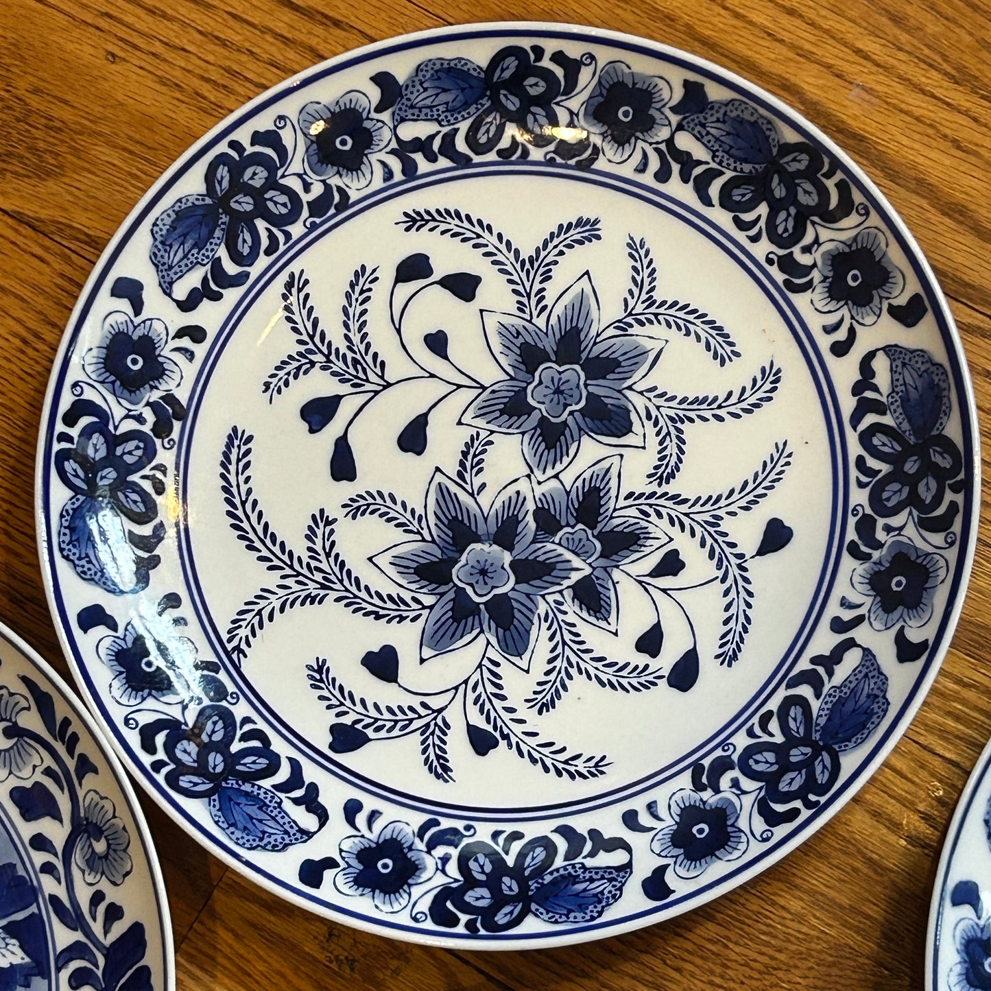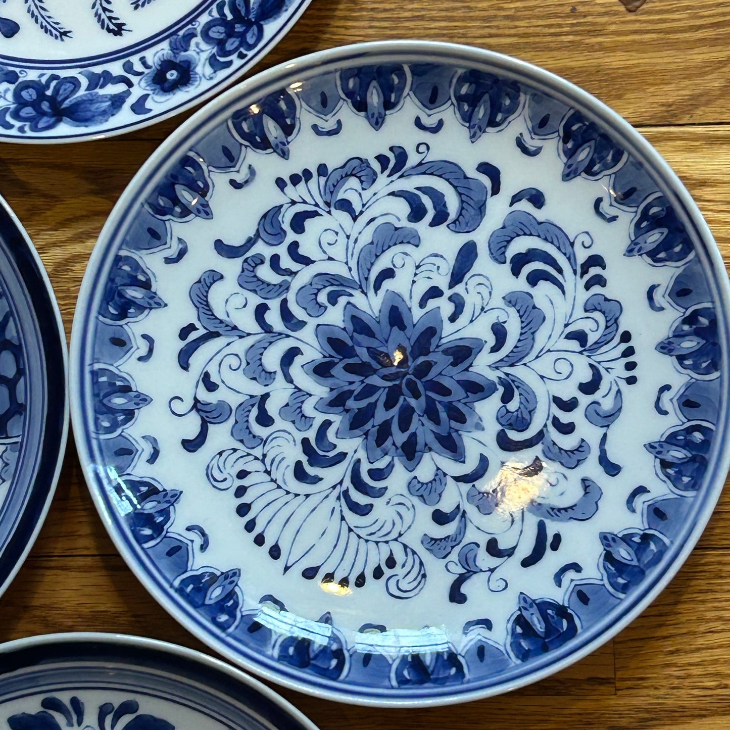 Set of 6 vintage chinoiserie blue & white 10.5 d plates