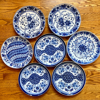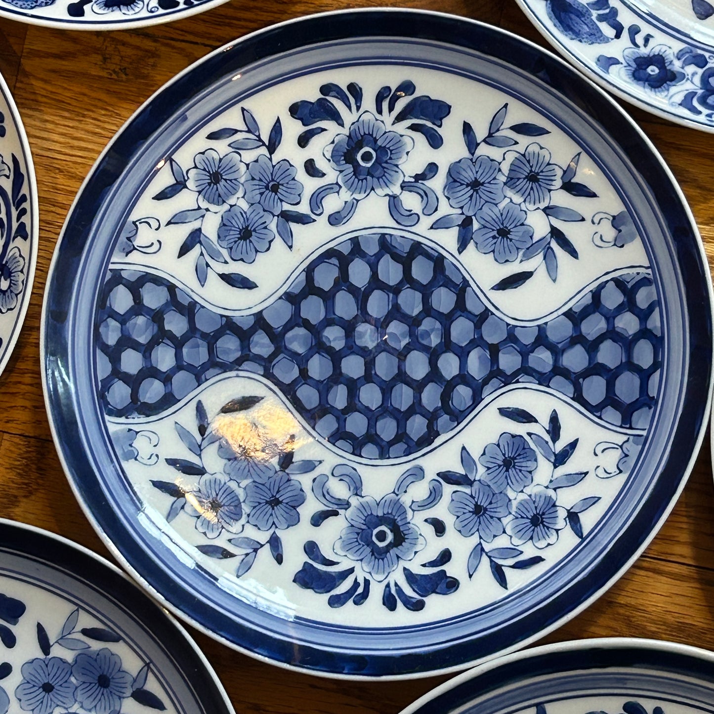This set of 6 vintage chinoiserie blue & white decorative plates is a great choice for enhancing your plate wall or table scape. Featuring a stamped design and measuring 10 inches in diameter, these plates are free of any chips or cracks, making them a durable and elegant addition to your collection.