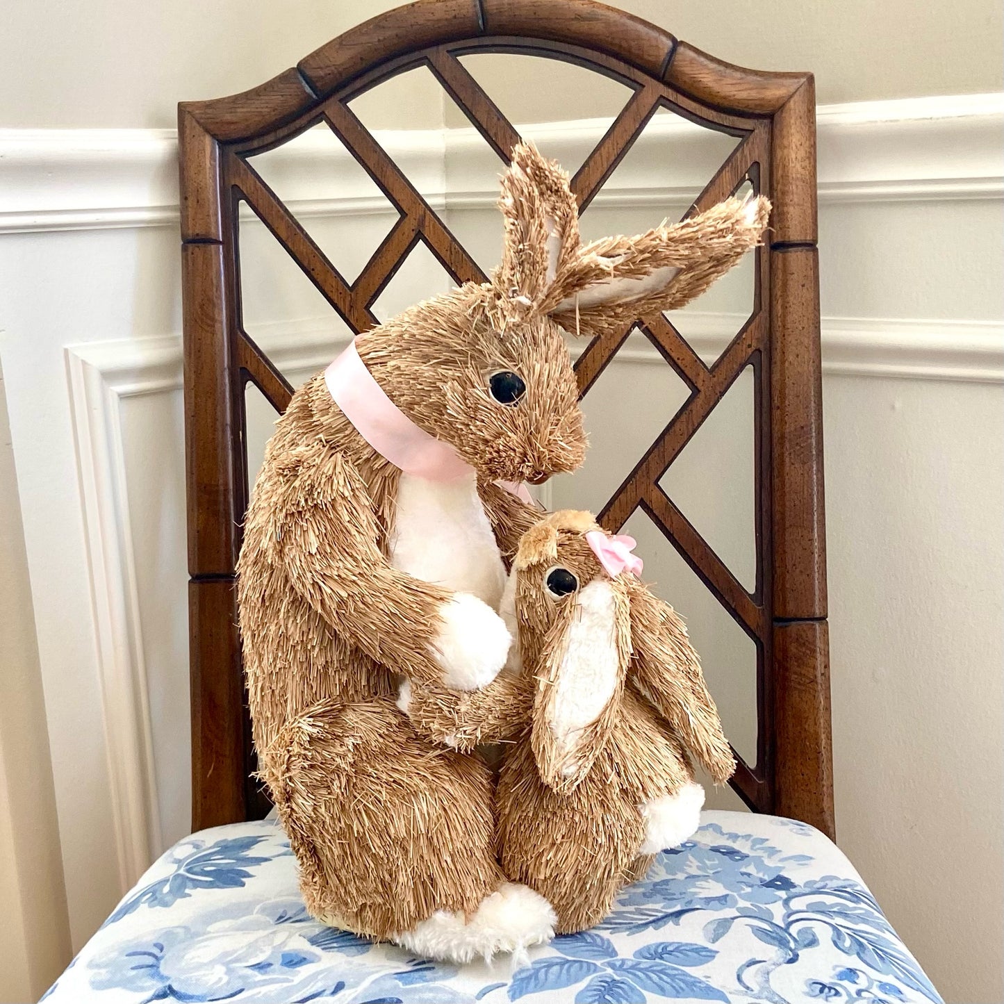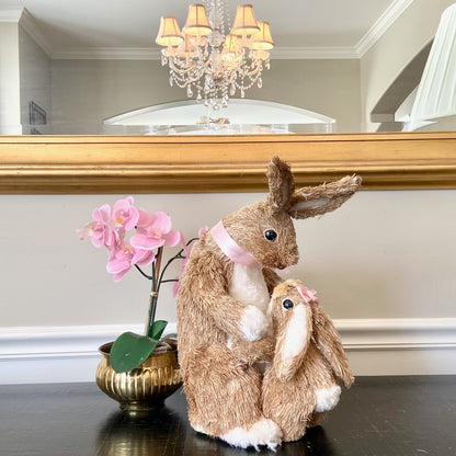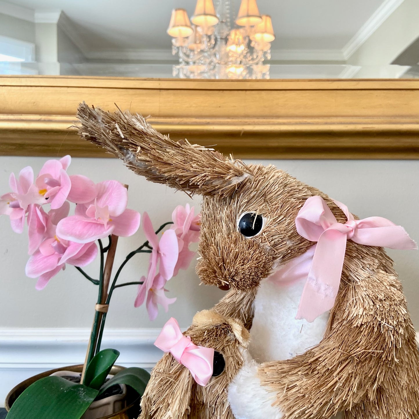 • Spectacular Mommy & Baby rattan bunny rabbit Easter table scape centerpiece decor.
