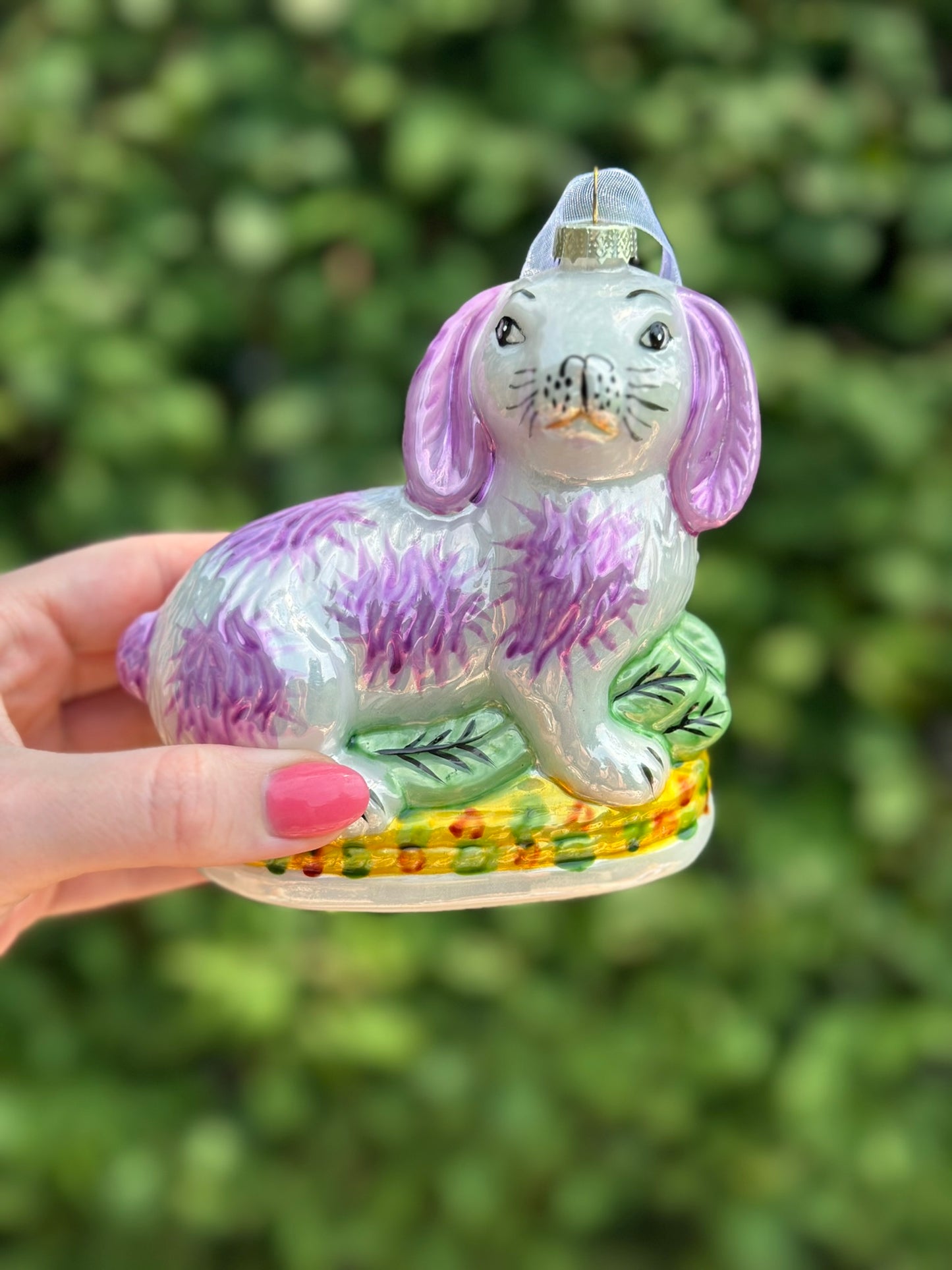 Staffy Bunny Rabbit Glass Ornament (Single) Pink & Blue - 9Lx2.5Wx4.5H