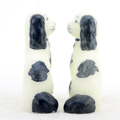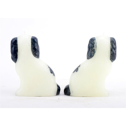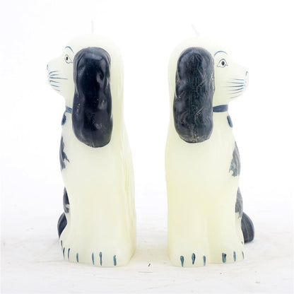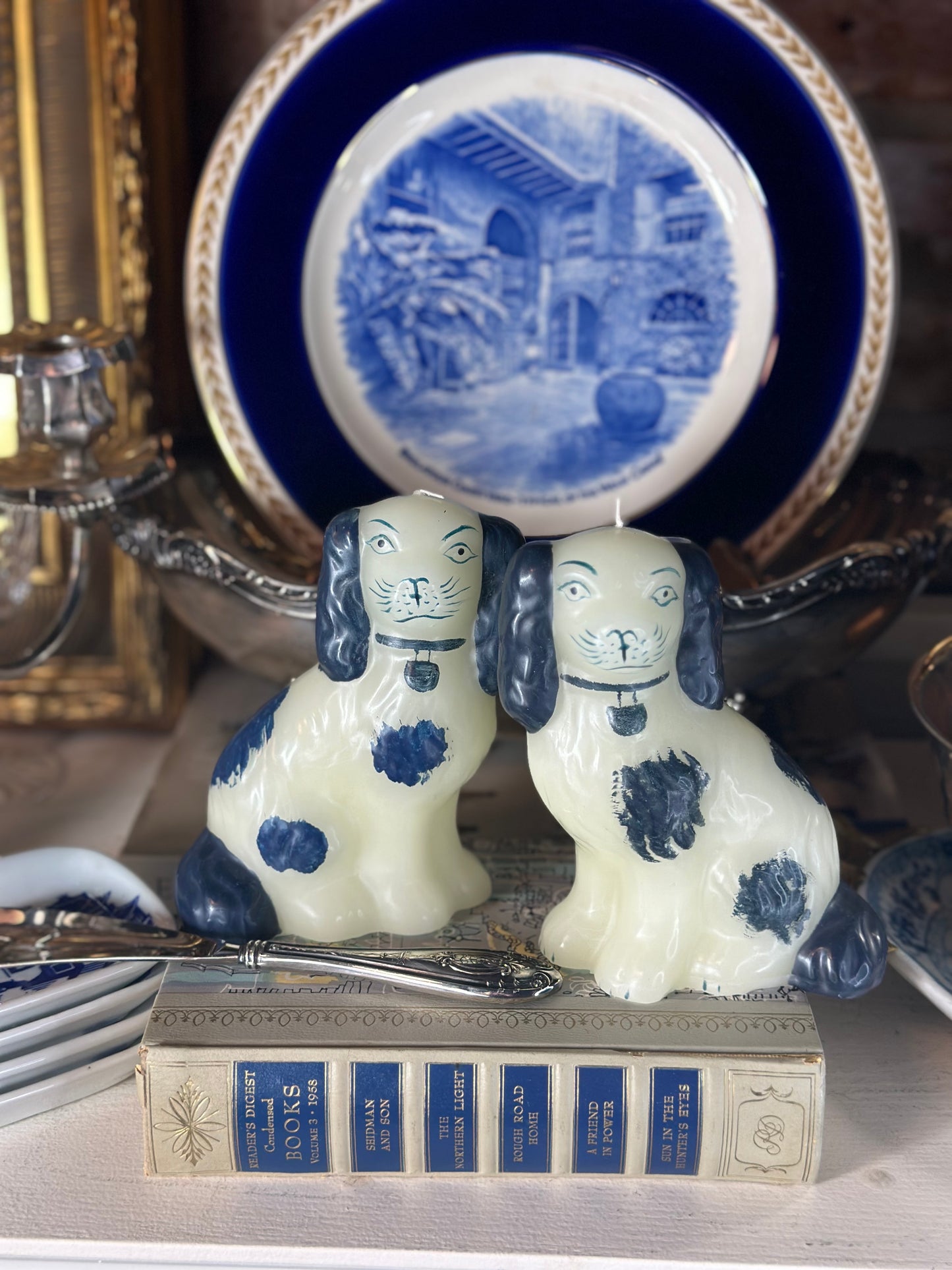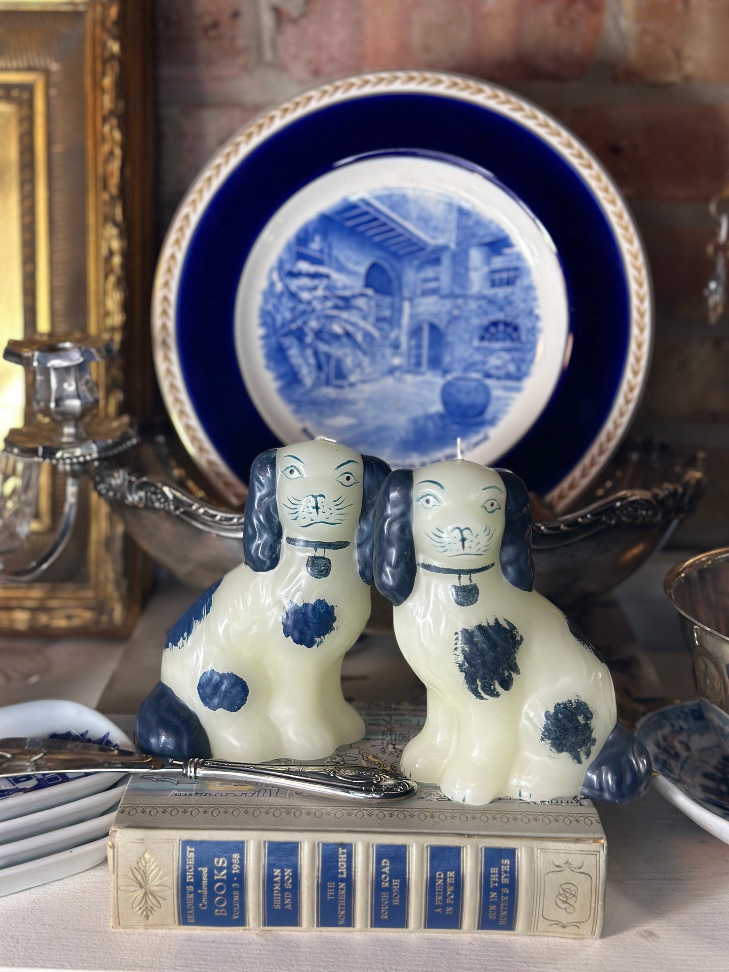 Danny’s Fine Porcelain: "Staffordshire" Spaniel Dog Candle Pair, Blue & white