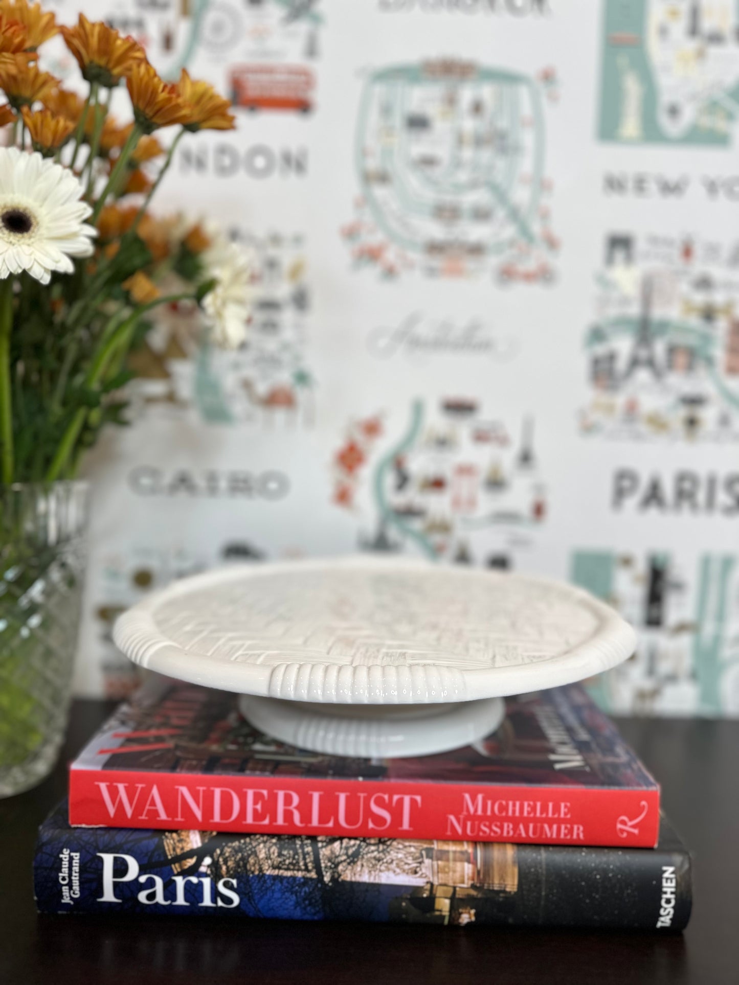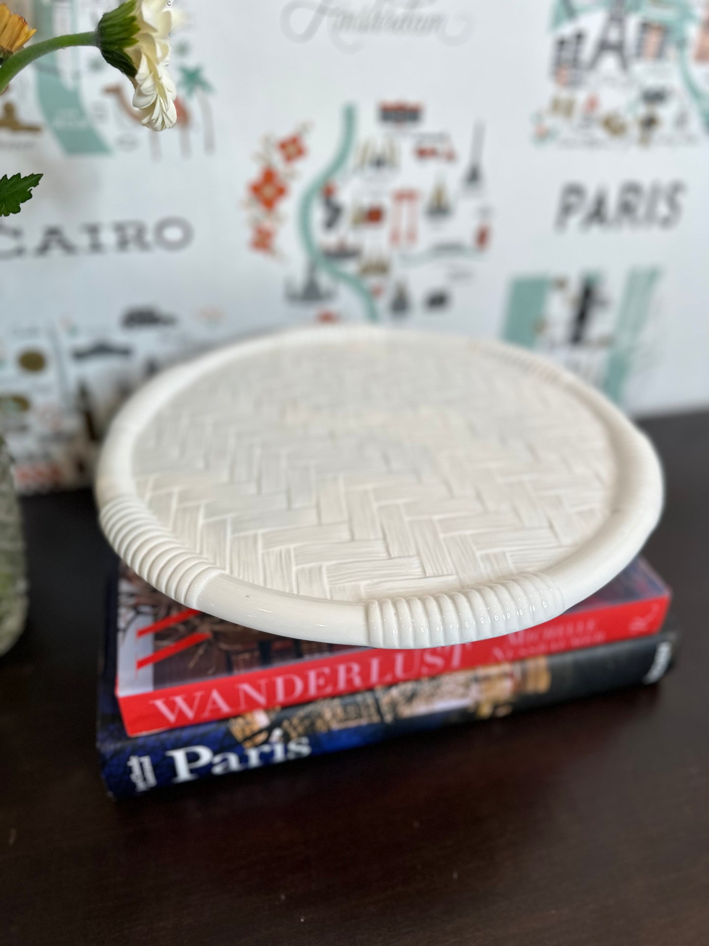 Vintage Este Ceramiche Basket Weave Cake Pedestal, Made in Italy, 13.25”