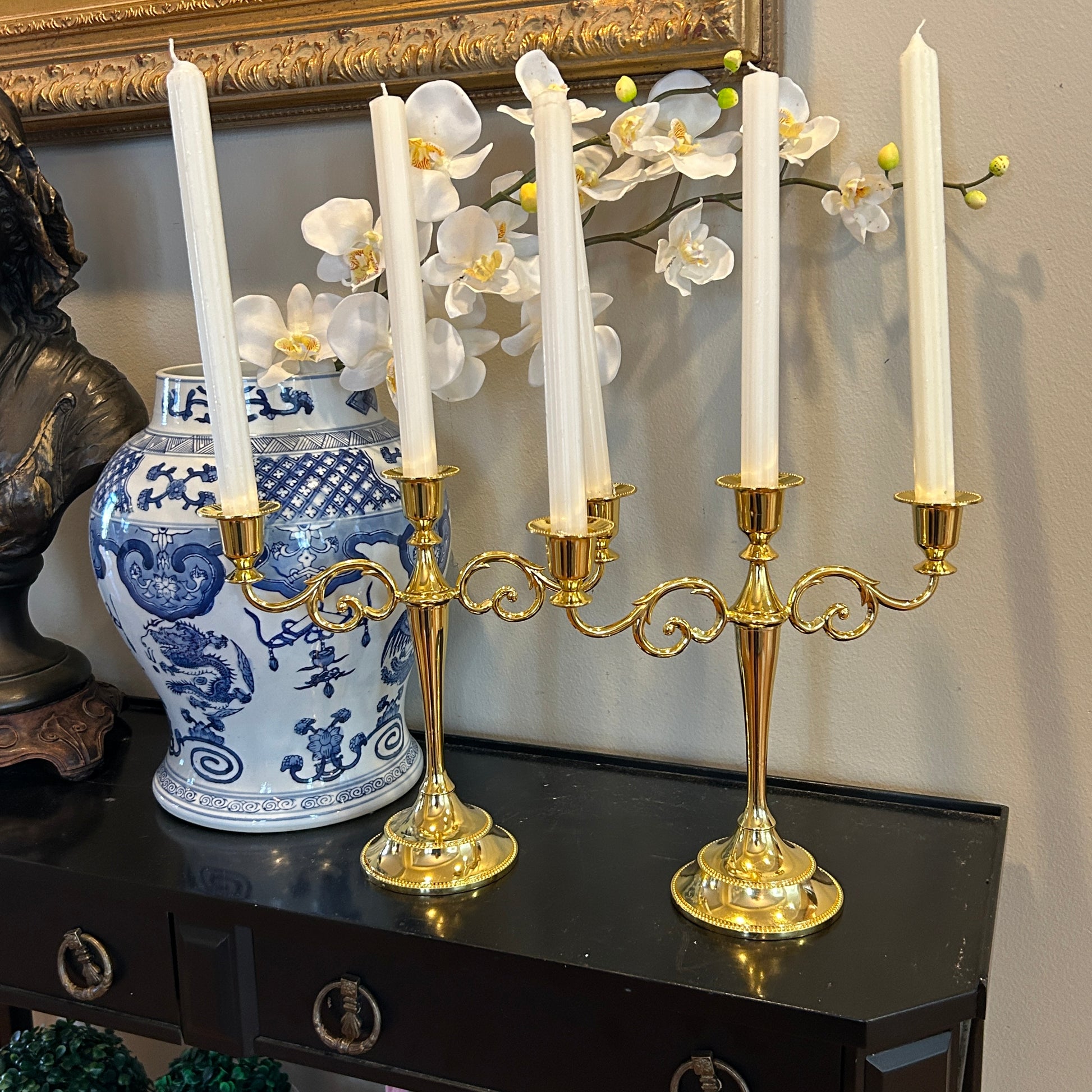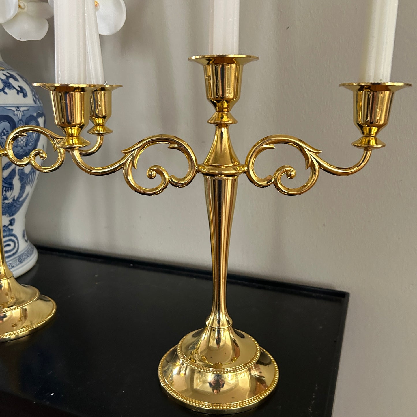 Exquisite gold triple candlelabra pair 10 x 10