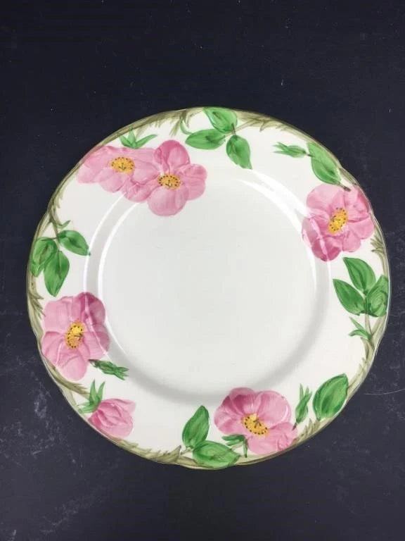 The Franciscan Ware Desert Rose Dinner Plate radiates timeless style and charm. Featuring a classic design, this 10.5-inch plate is in excellent vintage condition, perfect to add a touch of elegance to any table setting. Enjoy meals with friends and family with a timeless classic!