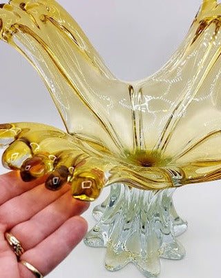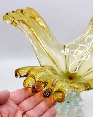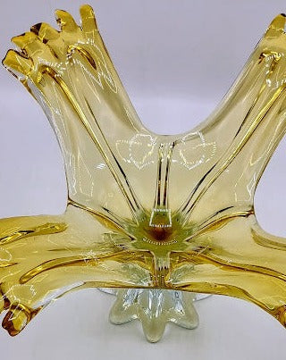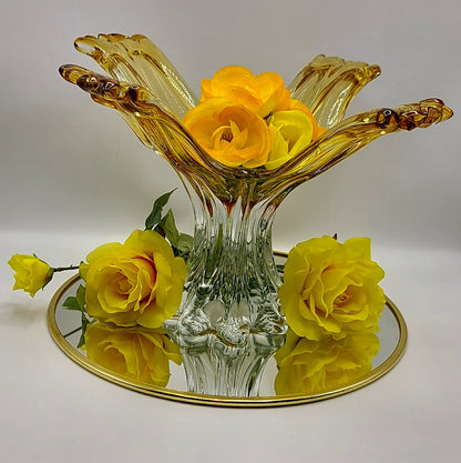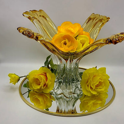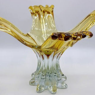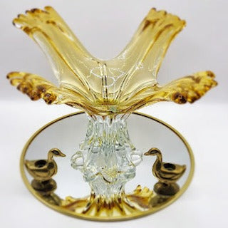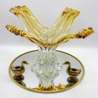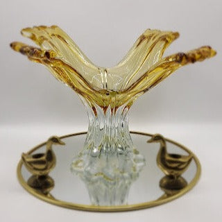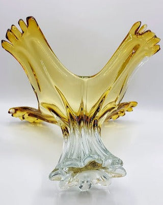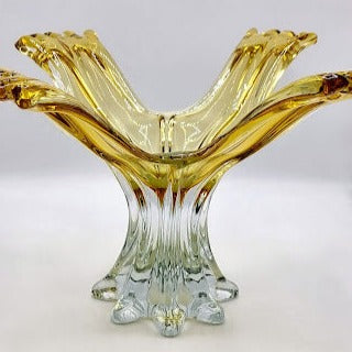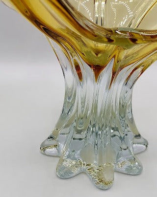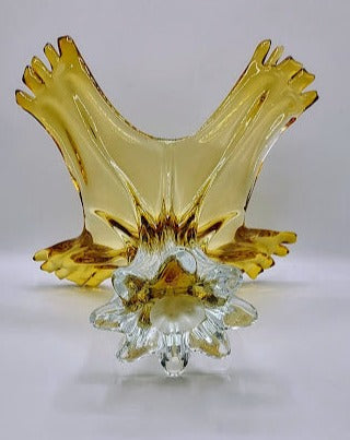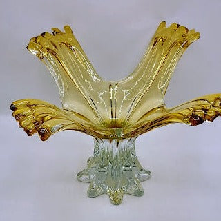 This stunning MCM amber glass compote is a beautiful addition to any home or event. Its rich color adds warmth and elegance, making it a perfect choice for a centerpiece. Crafted with attention to detail, this vase/compote will make a statement in any space.