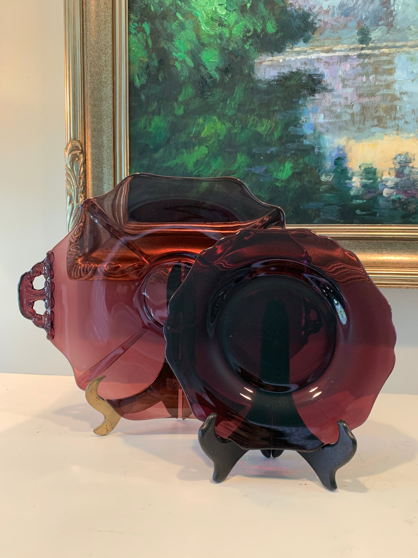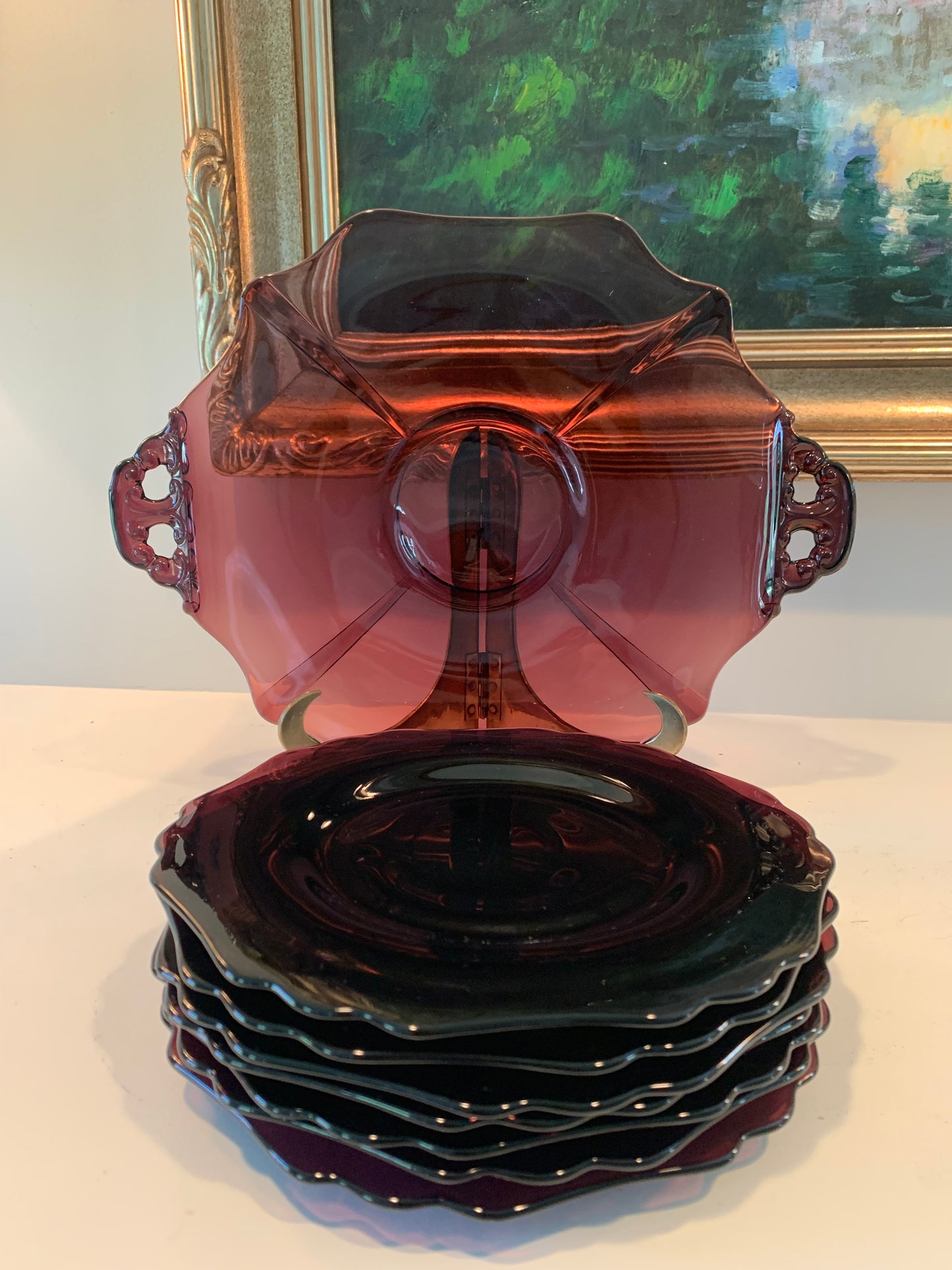 Set of Vintage Amethyst Glass (Serving Plate with (7) plates)