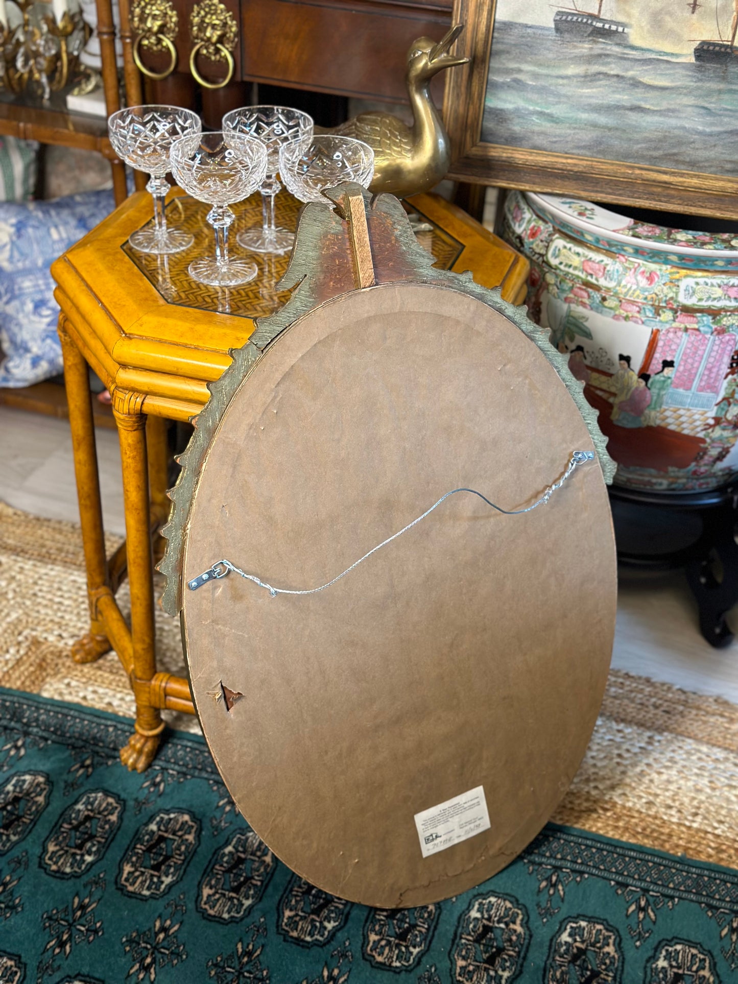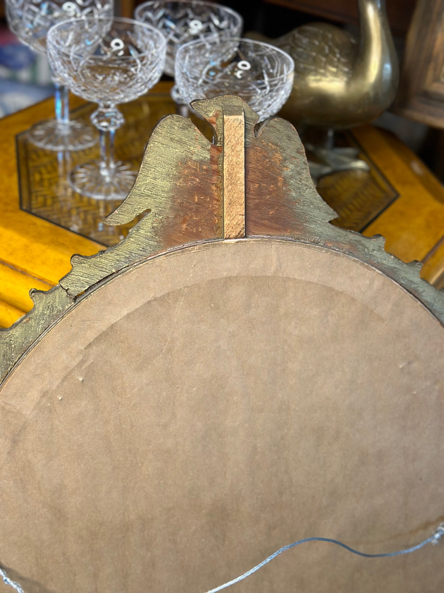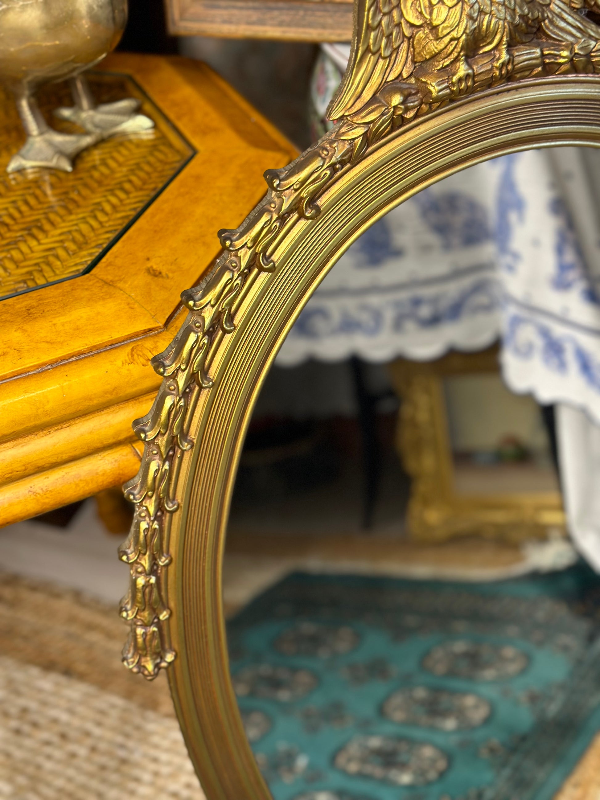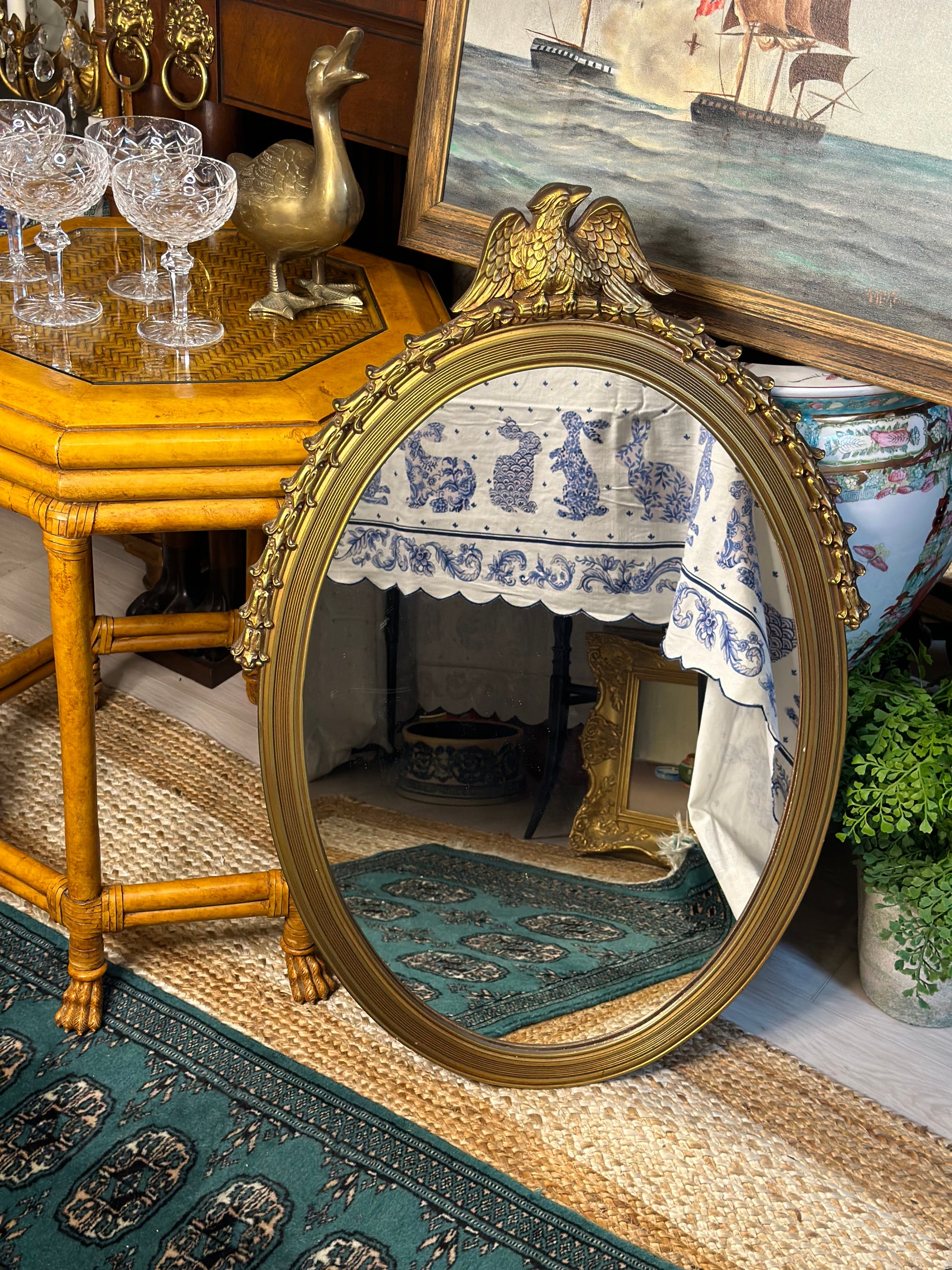 Vintage Ornate Wood Oval Eagle Mirror! 32” long, 22” wide.