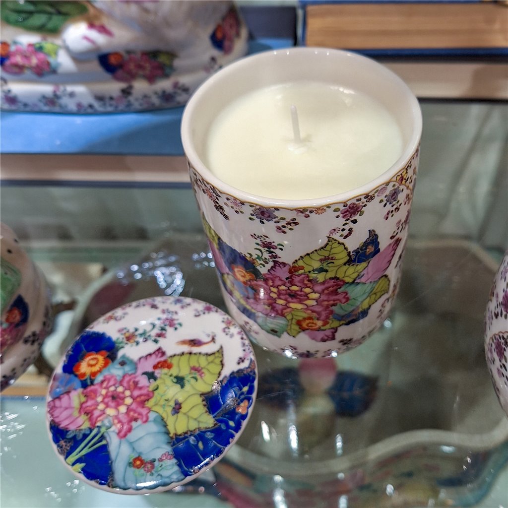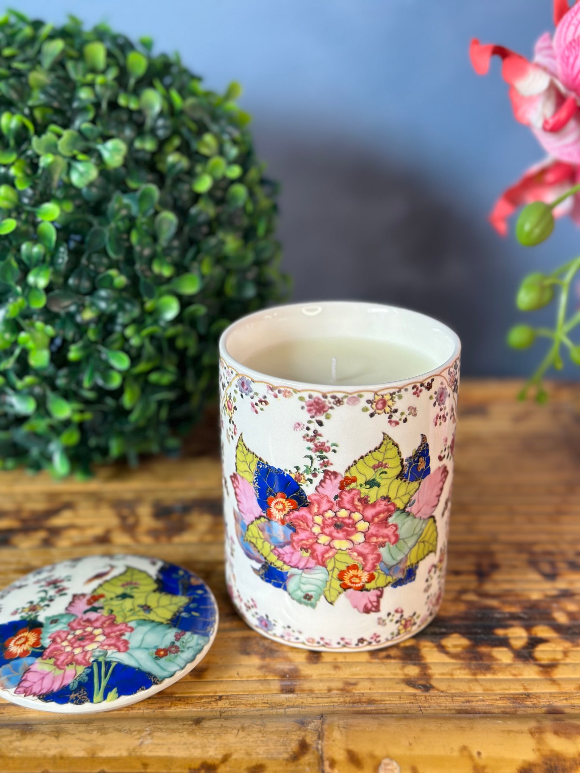 NEW - Tobacco Leaf, 10 oz. Soy Wax Candle, expertly crafted with the perfect blend of 3.5L X 3.5W X 4H measurements. Transform your space with the luxurious scent of rose in this tobacco leaf porcelain container W/lid.