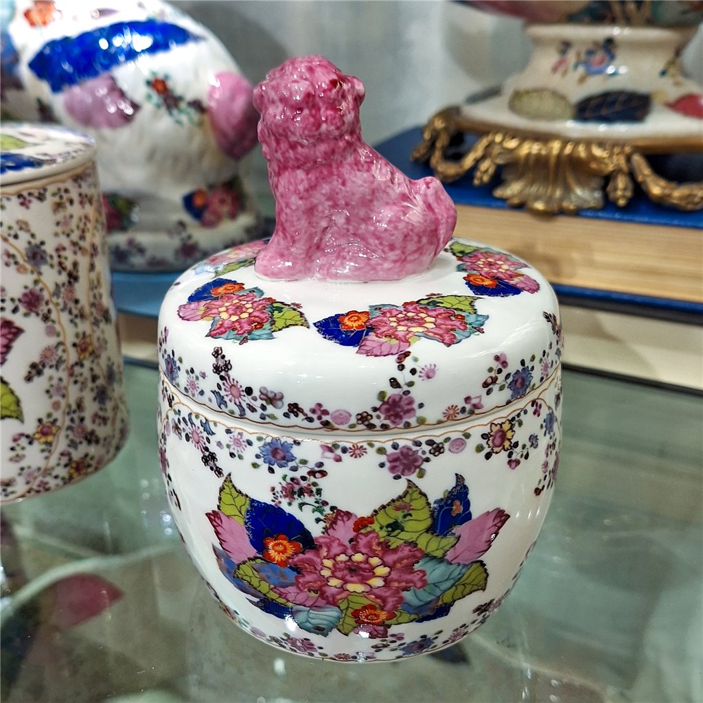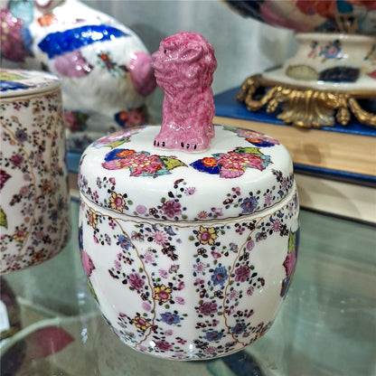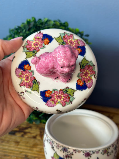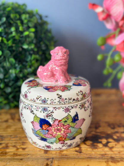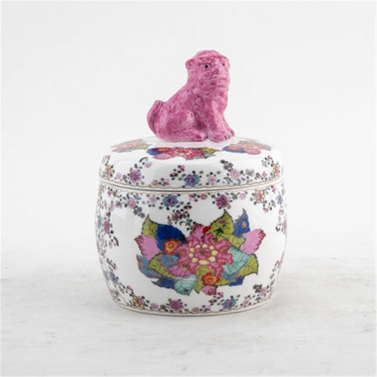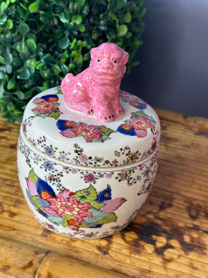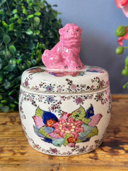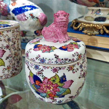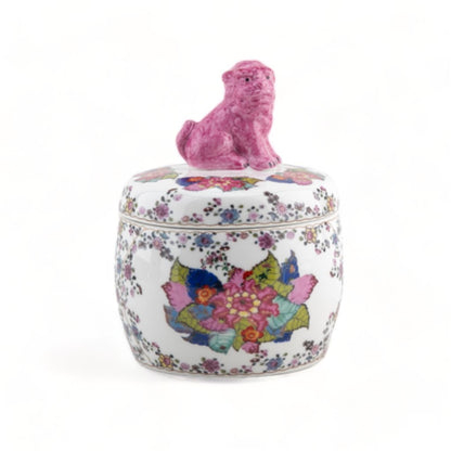 Danny’s Fine Porcelain - Tobacco Leaf Pink Foo Dog Lidded Box