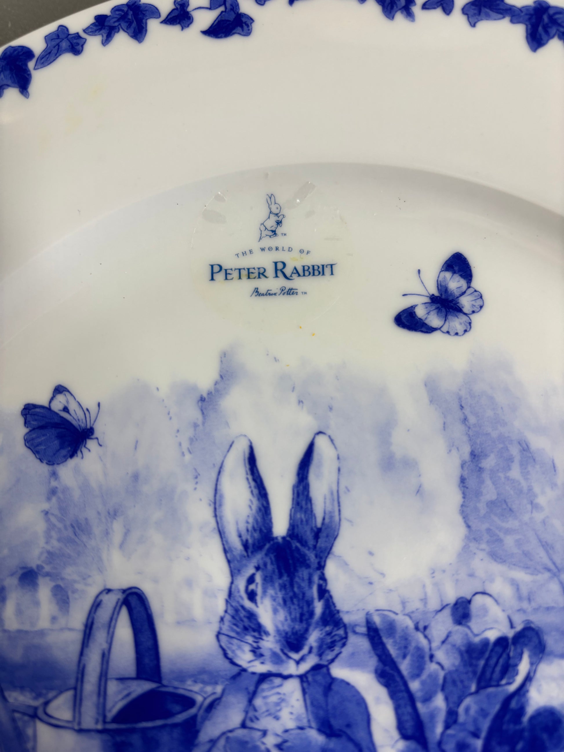 Peter Rabbit Blue and white dinner plate! Two available; sold separately! Measures 10.5”. Still have original stickers!
